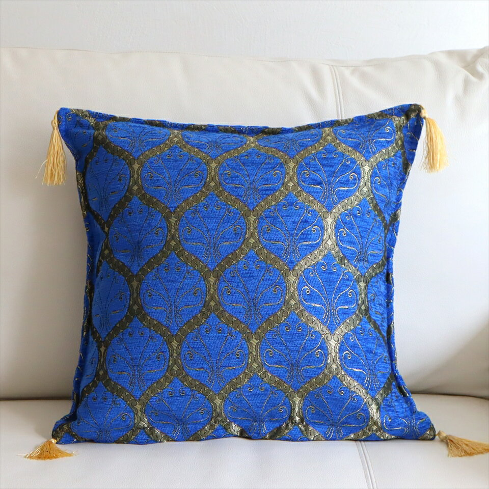 クッションカバー45×45cmトルコデザイン シュニール素材のクッションカバークレスト・ブルー
