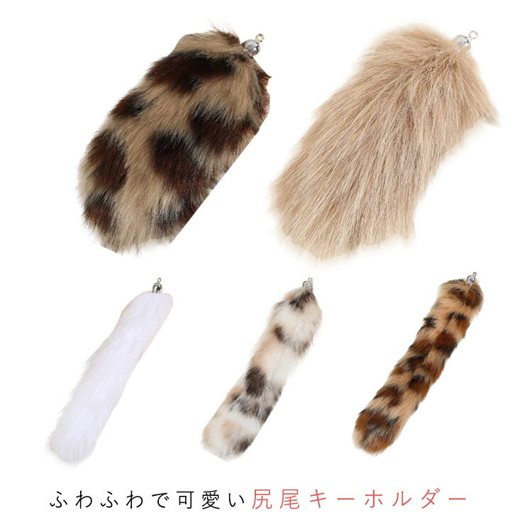 動物のふわふわ尻尾ギャルしっぽキーホルダーファーコスプレ狐お尻チャームフォックステール(ホワイト)