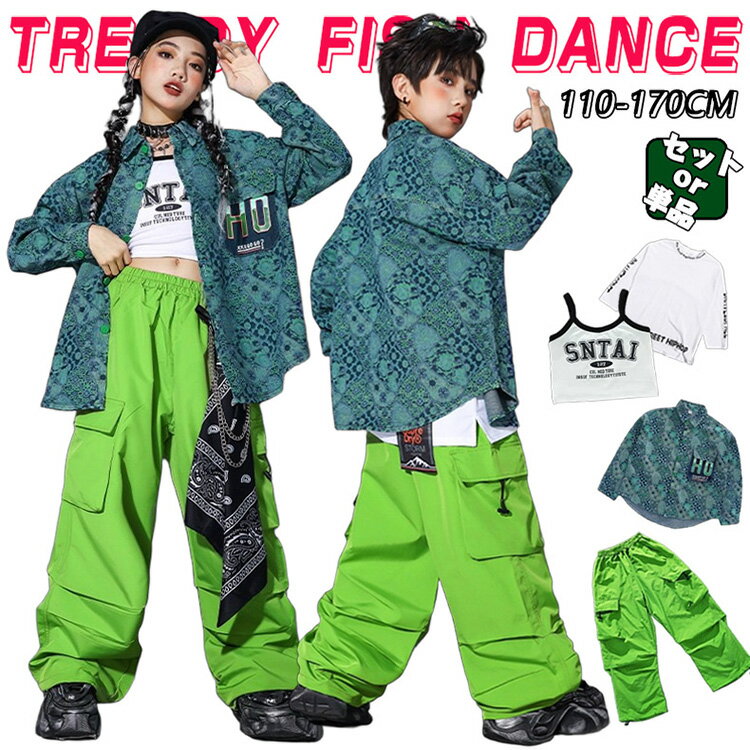 【コスパ最高】キッズダンス衣装トップスカーゴパンツパンツヒップホップTシャツダンス衣装子供服キッズダンスウェアカジュアル演出ジャズダンスHIPHOP応援団チアダンス演出服発表会原宿K-POPダンクトップピンクグリーンレッド