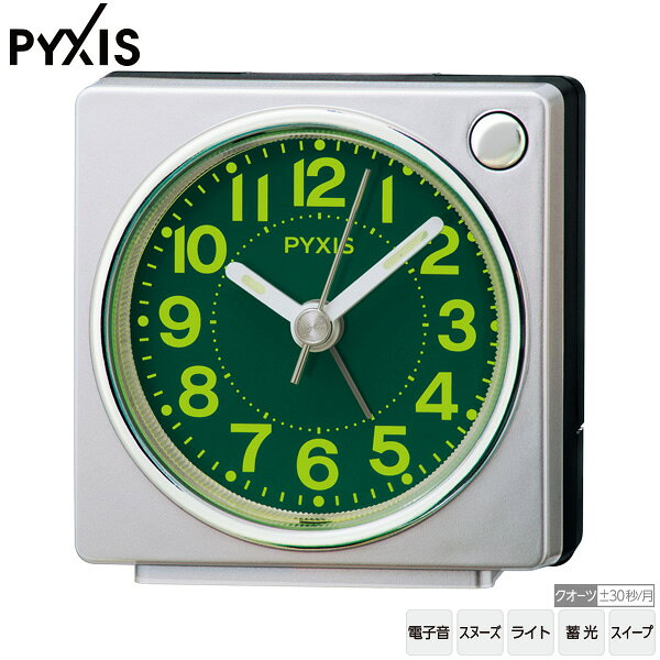 #SEIKO #セイコー #PYXIS #ピクシス クオーツ #目覚まし時計 #夜でも見える 電子音 #連続秒針 蓄光 集光樹脂文字板 ライト付き シンプル おしゃれ コンパクト 寝室 プチプラ 記念品 ギフト シルバー 銀色メタリック NR450S【楽ギフ_包装選択】.