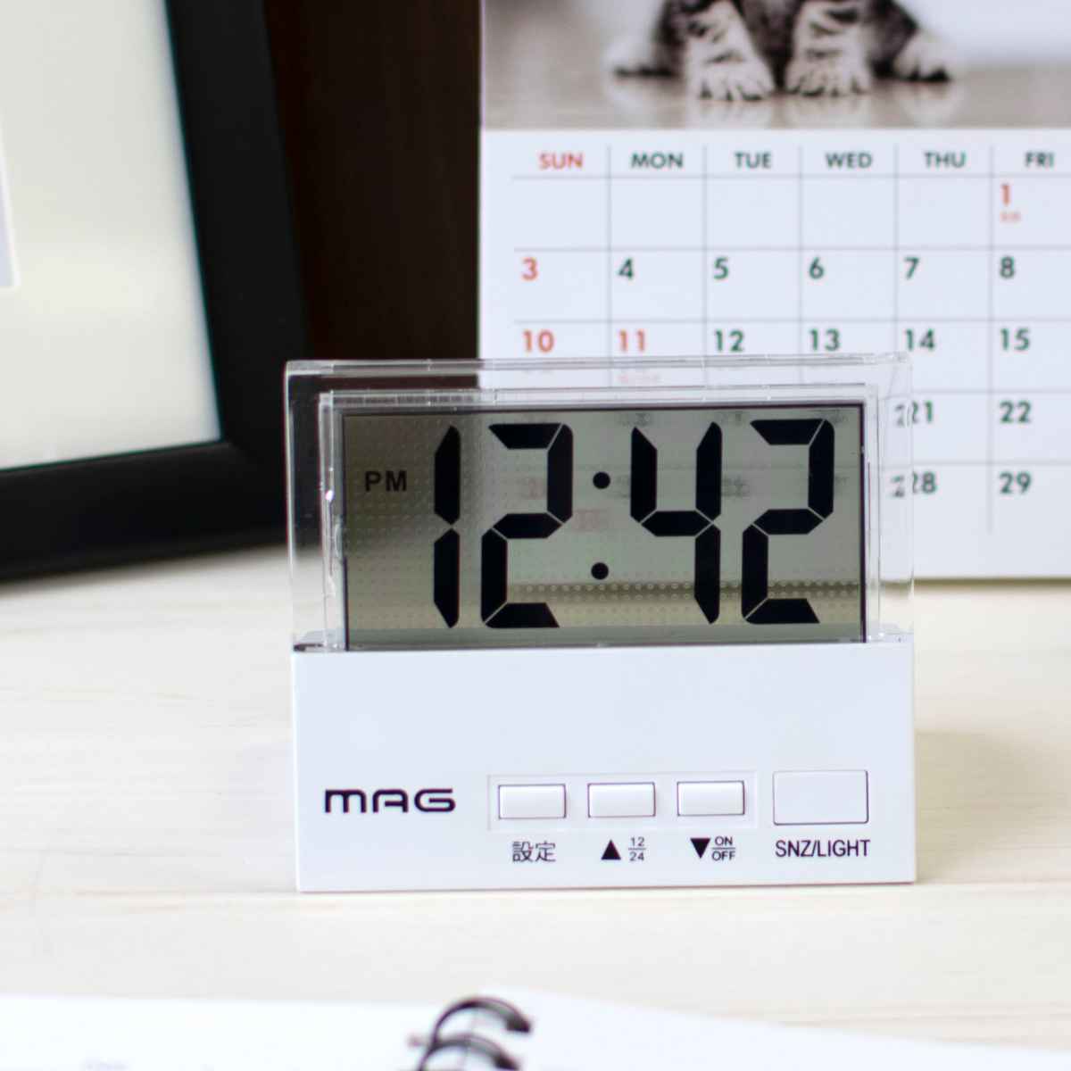 時計MAG目覚ましクリアタイムデジタル(目覚まし時計デジタル時計置き時計置時計とけいクロックコンパクトめざまし時計アラームクロックミニライト機能シンプル卓上クリア)