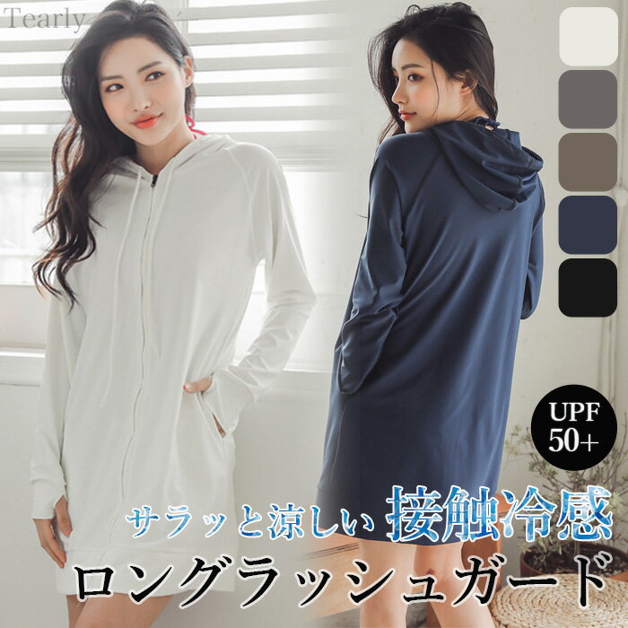 ラッシュガードレディース水着【一部商品値下げ中】ラッシュパーカーUVパーカーロングパーカーUVカットUPF50+ロング丈接触冷感体型カバー長袖水陸両用ママ水着普段着大きいサイズ紫外線対策日焼け対策露出控えめ【ML04】[M便1/1]