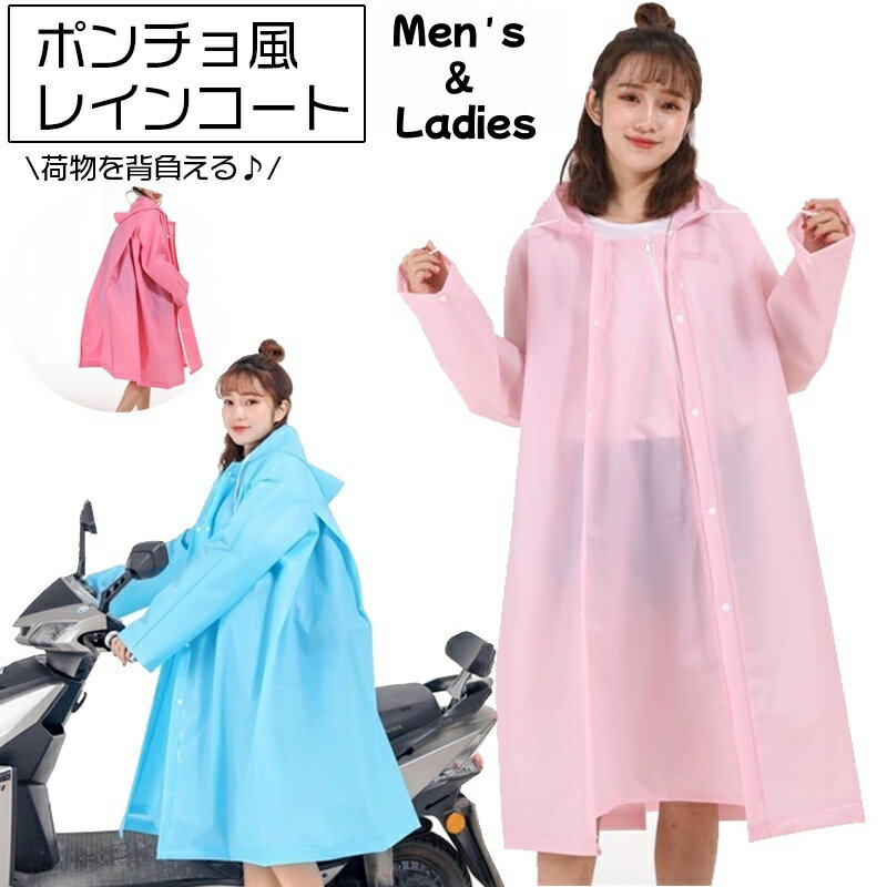 送料無料レインコートレインポンチョ雨具レディースメンズカッパ雨がっぱ雨合羽レインウェアリュックが背負える荷物ゆったりシンプル無地フード付きジップアップ自転車通学バイク通勤登山ハイキングアウトドアユニセックス男女兼用女性用婦人用