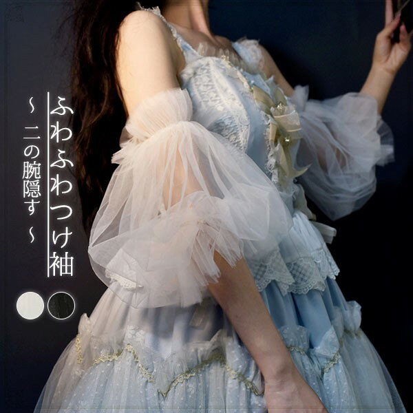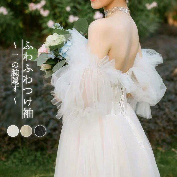 付け袖二の腕アームカバーふわふわつけ袖ゴム留めソフトチュールボレロ二の腕隠すレーディスパーティードレス用ウェディングドレス用ロリータワンピース用ブラックホワイト披露宴二次会発表会演奏会お呼ばれブライダルds109x1x1d7