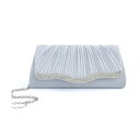 ドレスプラスDRESS+【結婚式・お呼ばれに使えるパーティーバッグ】ビジューラディアルサテンプリーツクラッチバッグ(シルバー)
