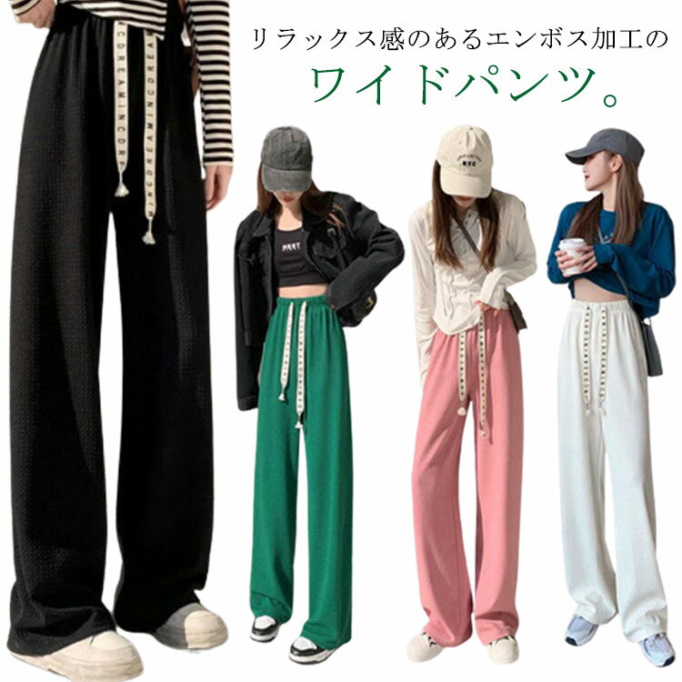 ストレートパンツレディースワイドパンツリラックスパンツ美脚脚長パンツウエスト紐ウエストゴム表面感春夏薄手ボトムスロングパンツ長ズボンゆったりカジュアルおしゃれシンプルかわいい送料無料