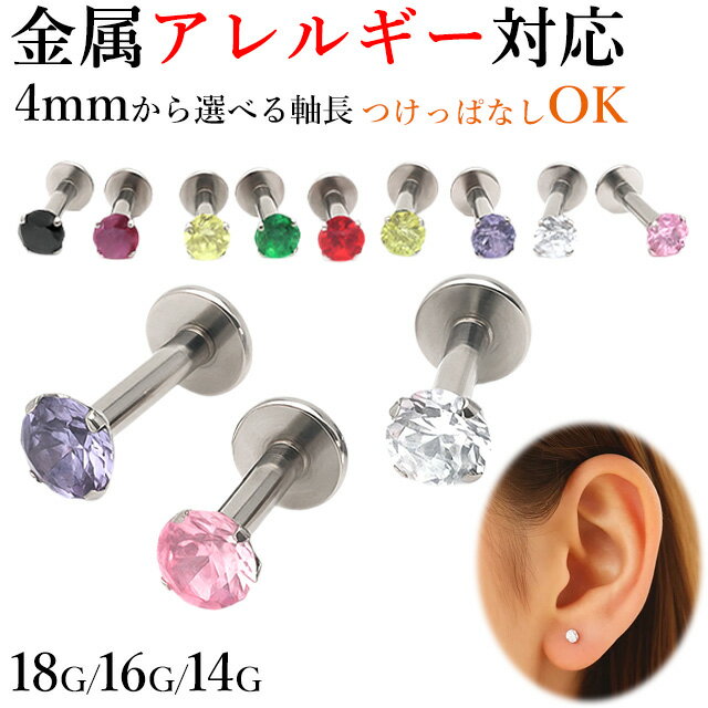 立爪ジルコニアピアス14Gカラバリ豊富4mmステンレスピアスインターナルラブレットボディピアスロブ軟骨ピアストラガスピアス
