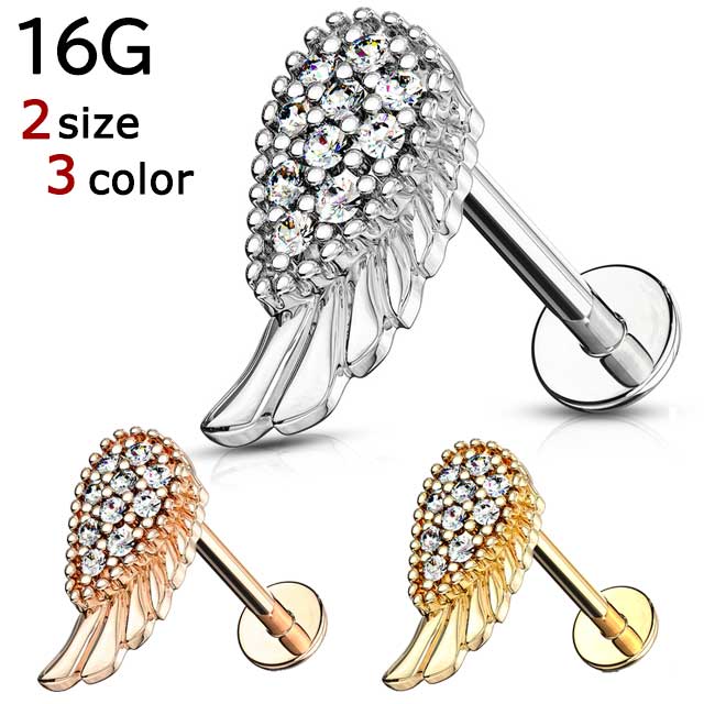 ボディピアスCZパヴェエンジェルウィングインターナルラブレットスタッド16G軟骨ピアス耳ピアスヘリックスボディピアス316Lサージカルステンレスボディピアスラブレットリップボディピアス金属アレルギーボディピアスnnktp