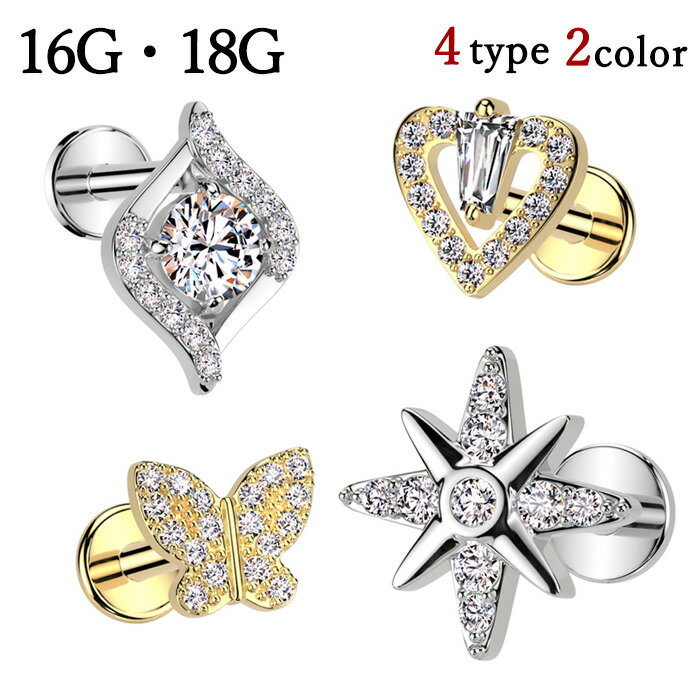 ボディピアスCZジュエルバタフライラブレットスタッド16G軟骨ピアス耳ピアスヘリックスラブレットリップ金属アレルギーボディピアスnnktpポイント消化消費