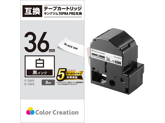 【レビュー投稿で100円OFFクーポン】【お取り寄せ】カラークリエーションテプラPRO互換テープ36mm白黒字CTC-KSS36K白ホワイトテプラPROテープキングジムテプラ事務機器