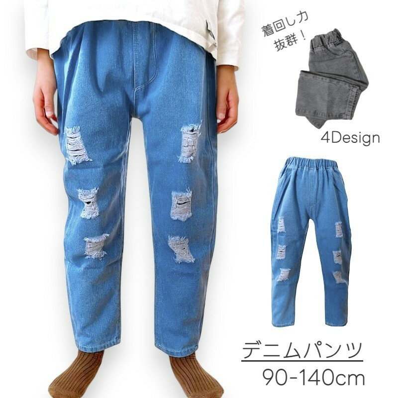 送料無料長ズボンロングパンツジーンズデニムダメージキッズ子どもベビージュニア男の子女の子ボトムス子供服100cm110cm120cm130cm140cm90cm小学生シンプル通年カジュアル