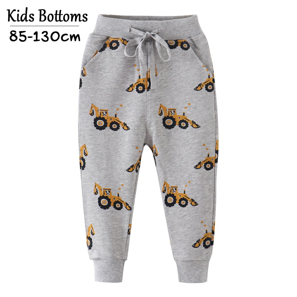 送料無料ロングパンツスウェット子供服キッズベビー男の子女の子働く車柄クルマショベルカー長ズボンウエストゴム紐裾リブおしゃれかわいいかっこいいカジュアルデイリールームウェアパジャマジョガーパンツ男児女児こども