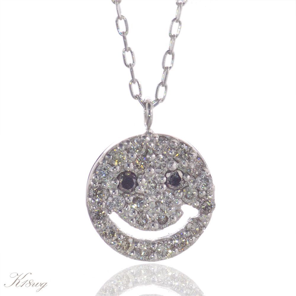 商品番号 CTC00396 使用貴金属 K18WG(18金ホワイトゴールド) 脇石 ダイヤモンド計0.15カラット 総重量 約1.2g サイズ 横幅:約8.0mm 縦幅:約10.1mm(バチカン含む)厚み:約1.1mmチェーン全長:40cm(37cmでも使用可能)太さ:約0.6mm 付属品 品質保証書 ジュエリーケース 備考 納期4週間(受注生産品) ダイヤモンドとブラックダイヤモンドを使用したスマイルモチーフのネックレスです。 両吊りではなく、バチカンを一つにすることですっきりとした印象に仕上げました。 同型のピアスもございます。 K18 スマイル パヴェ ダイヤモンド ピアス価格:35000円(税別) K18WG スマイル パヴェ ダイヤモンド ピアス価格:35000円(税別) K18PG スマイル パヴェ ダイヤモンド ピアス価格:35000円(税別) K18PG スマイル パヴェ ダイヤモンド ネックレス価格:35000円(税別) K18 スマイル パヴェ ダイヤモンド ネックレス価格:35000円(税別)K18WG スマイル パヴェ ダイヤモンド ネックレス 人気メンズジュエリー 人気レディースジュエリー 新作ジュエリー 喜平一覧 【01:59終了★10%OFFクーポン】ネックレス レディース K18 18金 ホワイトゴールド スマイルネックレス パヴェ ダイヤモンド ブラックダイヤモンド ニコちゃん【人気アイテム】 88,000 円