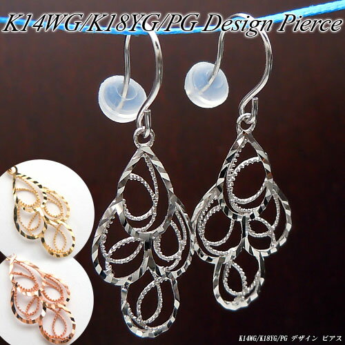 素材 K14ホワイトゴールド K18イエローゴールド K18ピンクゴールド サイズ ━【サイズ】━ たて:約29.7mm よこ:約10.6mm ━【ポスト】━ 太さ:約0.6mm ━【重さ】━ 約0.4g(片耳) 備考 ★その他 ゴールド・プラチナピアス・イヤリングはコチラ〜全3色♪エレガントな地金デザインピアス〜地金オンリーで構成されたピアス。 お顔に近いジュエリーですので、宝石が入っている方が、華やかに演出できる・・・とお思いの方が多いはず!!本商品は、石を何も使用しておりませんが、特殊なテクスチャーでキラキラ★で、とっても華やか!!しかも長さが約30mm(3cm)もございますので、髪の長い方でも、髪が少しなびくだけで、その存在感、ゴージャスさをアピールしてくれます!!今回は、そんな地金のみのデザインですが、抜群の存在感を放つ、ぶら下がりピアスのご紹介です♪:・*・:・:*:・:・*・:・:*:・:・*・:・:*:・:・*・:・:*:・:・*・:・:*:・:・*・:・:*:・:・全体は、まるで『孔雀(クジャク)の羽』の様なデザインで、涙型の透かしの輪に、特殊なテクスチャーが施され、さらに、細かなミル打ちのラインが流れるように配された本商品。 シンプルな鏡面仕上げではなく、凹凸のあるテクスチャーは、少しの動きでもキラキラと輝き、また、ミル打ちのラインは、ポコポコと可愛らしい輝きを放ってくれます♪今回ご用意したお色は全部で3種類♪[ホワイト/イエロー/ピンクゴールド]お好みをお選び下さい!:・*・:・:*:・:・*・:・:*:・:・*・:・:*:・:・*・:・:*:・:・*・:・:*:・:・*・:・:*:・:・↑画像をクリックで、更に詳細な拡大画像をご覧いただけます。 サイズは、たて約30mm×よこ約10mmと、小指の第一関節程の大きさ♪その大きさと、輝きが相まって、存在感は抜群!ロングヘアーの方でもOKです★ご自身にはもちろん、プレゼントにも是非おすすめのデザインピアスですよ♪↑画像をクリックで、更に詳細な拡大画像をご覧いただけます。 選べる3色のぶら下がりピアス♪涙型の透かしデザインの輪を4つ配した、地金オンリーのデザインピアスの本商品!!今回は、全部で3種類ご用意!!清楚で定番!!【ホワイトゴールド】ゴージャスで華やか!!【イエローゴールド】フェミニンで可愛い!!【ピンクゴールド】同じデザインのピアスでも、金種が異なると、印象はガラリと変わります。 貴女はどのお色がお好みですか?↓以下の各画像をクリックで、更に詳細な拡大画像をご覧いただけます↓【全体】サイズは、たて約30mm×よこ約10mm程度と、存在感たっぷり!!【ポスト部分】軸の太さは約0.6mm。 忙しいお出かけ時にも簡単に装着できるアメリカンタイプ!シリコンキャッチ付【アップ】キラキラのテクスチャーと、可愛いミル打ち。 是非クリックで拡大画をご覧下さい!!【モデル画像】WGの装着時はご覧のような雰囲気!!清楚な煌きを耳元から放ってくれます!! 【全体】こちらは華やかなイエローゴールド!!同じデザインでも印象はガラリと変わります!!【アップ】少しの動きでもキラキラ!!ゴールドの煌きを耳元から放ってくれます。 【全体】こちらは女性に人気のピンクゴールド。 フェミニンで可愛い色合いです♪【アップ】2種類のラインと、上品な透かしデザイン!!地金オンリーですが、存在感たっぷり♪ 30歳スタッフ代表 Tちゃんから一言………………………………………………………………………………地金オンリーで構成された、キラキラ可愛いぶら下がりピアスの登場です!!全体は、立体感のある2層になっており、1層目には、凹凸のある特殊なテクスチャーが施された、涙型の輪が4つ連なった、孔雀の羽の様なデザイン。 2層目は、ぽこぽこと可愛いミル打ち加工が施された、流れるようなラインが、あしらわれたデザイン♪それぞれ違った輝きを放ち、また、透かしデザインですので、上品な趣きを演出してくれます。 お色は全部で3色ご用意♪色鮮やかな宝石は一切使用しておりませんが、手の込んだデザインで、少しの動きでもキラキラ!!嫌味のない上品な煌きを耳元にいかがですか? 新春ポイント20倍/ホワイト/イエロー/ピンクゴールド (K14WG/K18YG/PG) デザイン ピアス(ぶら下がり/3色/孔雀の羽/クジャク/地金/透かし/フック/ゴールドピアス)【宝石 ジュエリー】【プレゼント】*【夏色】 49,800 円