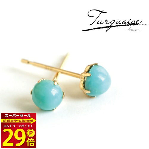 ★緊急SS期間★全品ポイント29倍!エントリー必須☆彡 【A.UN jewelry】 ターコイズ ピアス 《直径約4mm》 K18 YG / カボション ピアス / 18金 スタッドピアス / 12月 誕生石 / 両耳用【m】 13,530 円