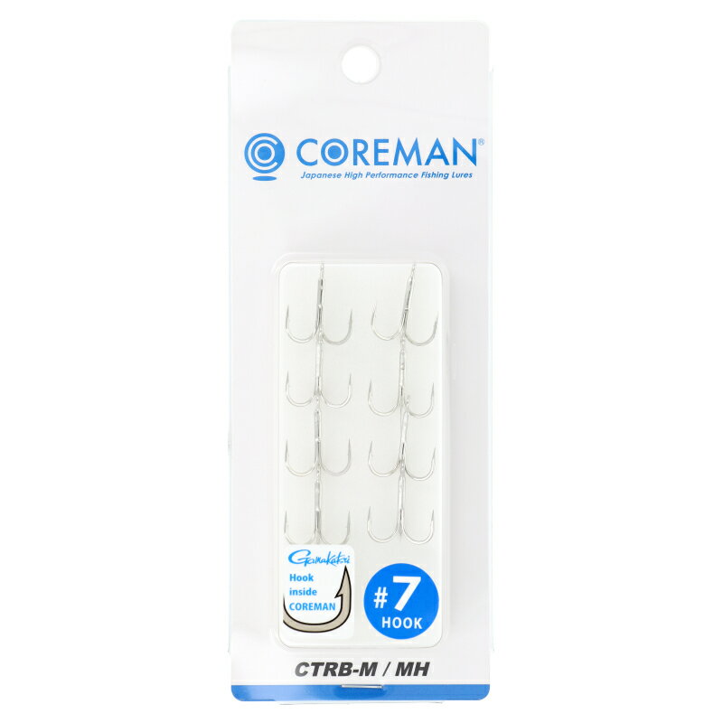 ●商品名に【同梱不可】【他商品同時注文不可】と記載されている商品は別倉庫から発送となるため同梱できません。 システム上、同時注文が可能ですが、その際は勝手ながらキャンセルとさせて頂きます。 キャンセルに伴い、各種キャンペーンの適用など取消となりますが、ご注文条件やポイントの補填・補償等は一切お受けできかねます。 また、再度ご注文いただく際に完売となっている場合や、キャンペーン条件が異なる場合がございます。 ●掲載商品は複数サイトおよび実店舗で併売しています。 ご注文タイミングにより欠品し、お取り寄せにお時間を頂く場合やお手配が出来ずにやむを得ずキャンセルさせて頂く場合がございます。 ●商品画像は代表画像です。 仕様変更により商品スペックやパッケージなど変更となる場合がございます。 仕様変更に伴う返品、商品交換の際の往復送料はお客様ご負担となります。 ●店舗都合・お客様都合に依らずご注文内容の修正やキャンセルを行った際に在庫なしとなる場合やポイント、クーポンなど各種キャンペーンが適用外となる場合がございます。 大変恐縮ながらこのような場合でも補填などは出来かねますのでご了承下さい。 【コアマン/COREMAN】アイアンプレートシリーズの純正トレブルフックが、このたびパッケージが新しくなりリニューアルリリースになりました。 刺さり抜群のトーナメントグレードワイヤー!アイアンプレート純正トレブルフック!信頼のがまかつ製フック「トレブルラウンドベンドミディアム」に特別表面メッキ処理(金属及び鉛製ルアーに装着の際、電蝕による変色がない錫メッキ)を施して、刺さりの良さと輝きの持続を実感できる、コアマンスペシャルフック。 高強度、高靭性素材「トーナメントグレードワイヤー」の採用により、フックポイントの耐久性と全体強度が大幅に向上。 スプリットリングへの装着が容易で、無用な変形を防ぐ、マジックアイ。 自然にフッキングベストポジションを常に維持する、センターバランスアイ設計。 ラウンドベンドフォルムが、高次元でのフッキング性能と高いホールディング性能を約束。 ロングテーパードポイントが、優れた貫通性能を発揮。 マイクロバーブ採用によりスムーズに貫通し、身切れを最小限に抑える事でバレを軽減。 ※CTRBは、コアマンのアイアンプレートシリーズの純正フックです。 (がまかつ製)[COREMAN TREBLE ROUND BEND][CTRB-M]サイズ:M #7入数:8本OUTSIDE:TIN PLATING TKM-16-07-02 【お買い物マラソン!3点購入でP最大28倍!】コアマントレブル ラウンドベンド M #7【ゆうパケット】 1,210 円