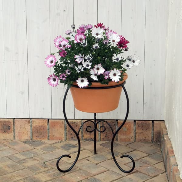 ベルツモアフラワースタンド:PS-260(ねこ脚)(内径26cm 高さ40cm)くるっとした内巻きの猫脚がかわいらしいフラワースタンド。 内巻きの形状によって散水ホースなどが引っかかりにくいというのもうれしいですね。 また、リングより小さい鉢でも、下の内巻きの足が支えてくれるので上下をひっくり返して使用することもできますよ。 ※園芸資材ですので細かな傷はございます。 予めご了承ください。 サイズ(約):リング内径26cm、高さ40cm、線径10mm(最大幅36cm、最大奥行き32cm) 材質:スチール色:つや消しブラック※画像の植物等は商品に含まれません。 フラワースタンド:PS-260(ねこ脚)(内径26cm 高さ40cm)の栽培ガイド8月の暑さ対策水はけチェックベルツモアジャパン[Bells More Japan]のアイアン製品について フラワースタンド:PS-260(ねこ脚)(内径26cm 高さ40cm) 3,731 円