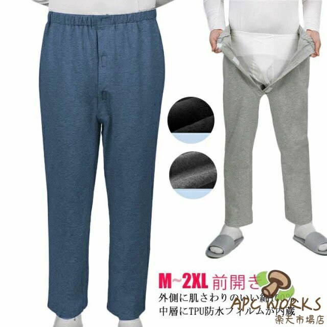 外側に肌さわりのいい綿100%、中層にTPU防水フィルムが内蔵、直接肌に触るの側には柔らかくもふもふ触感の生地を採用します。 安心しておやすみいただけます。 前開きタイプなので、着脱ぎも簡単でオムツ交換も楽に行えます。 ねしょはもちろん、介護用や入院時で介助が必要な時、さらに生理中の漏れ心配な女性の方にもおススメです。 サイズ M L XL 2XL サイズについての説明 M:ウエスト92cm L:ウエスト100cm XL:ウエスト115cm 2XL:ウエスト125cm 素材 コットン 色 ネイビー(裏起毛なし) グレー(裏起毛なし) ネイビー(裏起毛あり) グレー(裏起毛あり) 備考 ●サイズ詳細等の測り方はスタッフ間で統一、徹底はしておりますが、実寸は商品によって若干の誤差(1cm〜3cm )がある場合がございますので、予めご了承ください。 ●製造ロットにより、細部形状の違いや、同色でも色味に多少の誤差が生じます。 ●パッケージは改良のため予告なく仕様を変更する場合があります。 ▼商品の色は、撮影時の光や、お客様のモニターの色具合などにより、実際の商品と異なる場合がございます。 あらかじめ、ご了承ください。 ▼生地の特性上、やや匂いが強く感じられるものもございます。 数日のご使用や陰干しなどで気になる匂いはほとんど感じられなくなります。 ▼同じ商品でも生産時期により形やサイズ、カラーに多少の誤差が生じる場合もございます。 ▼他店舗でも在庫を共有して販売をしている為、受注後欠品となる場合もございます。 予め、ご了承お願い申し上げます。 ▼出荷前に全て検品を行っておりますが、万が一商品に不具合があった場合は、お問い合わせフォームまたはメールよりご連絡頂けます様お願い申し上げます。 速やかに対応致しますのでご安心ください。