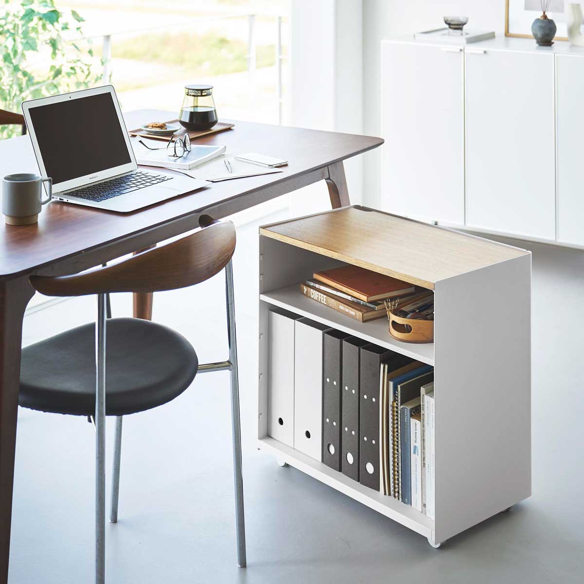キャスター付きのデスクワゴン 隠して収納できるテレワークワゴン。 リビングにもピッタリ、隠して収納できるテレワークワゴンです。 最上段は作業台としての使用や、プリンターの設置にもおすすめです。 キッチンやランドリーでも活躍 棚板は収納する物に合わせて高さを調節することができます。 キャスター付きなので移動もしやすく、来客時にはワゴンを裏返せばサッと隠して収納することができます。 商品の情報 ・ブランド:YAMAZAKI(山崎実業)/日本 ・ジャンル:デスクワゴン ・主な素材:スチール 粉体塗装(本体、棚板)/天然木化粧繊維板 ウレタン樹脂塗装(天板)/ナイロン(キャスター) ・生産国:中国 ・サイズ:約W603xD353xH590mm(キャスター含む) ・内寸サイズ:約W585xD335xH510mm/D320mm(棚板、底板)/28mm(背面パネルと棚板、底板との隙間) ・重量:約14320g ・耐荷重:天板10kg/棚板7kg/底板15kg ※静止荷重 ・付属品:スパナ ・その他:お客様組立て品となります。 この商品の仲間たち tower タワー 隠せるテレワークワゴン 1424 ホワイト tower タワー 隠せるテレワークワゴン 1425 ブラック デスクワゴン 山崎実業 正規品 tower タワー 隠せるテレワークワゴン プリンターの設置にもおすすめ キャスター付き 脇机 収納棚 サイドワゴン 1424 ホワイト 18,700 円