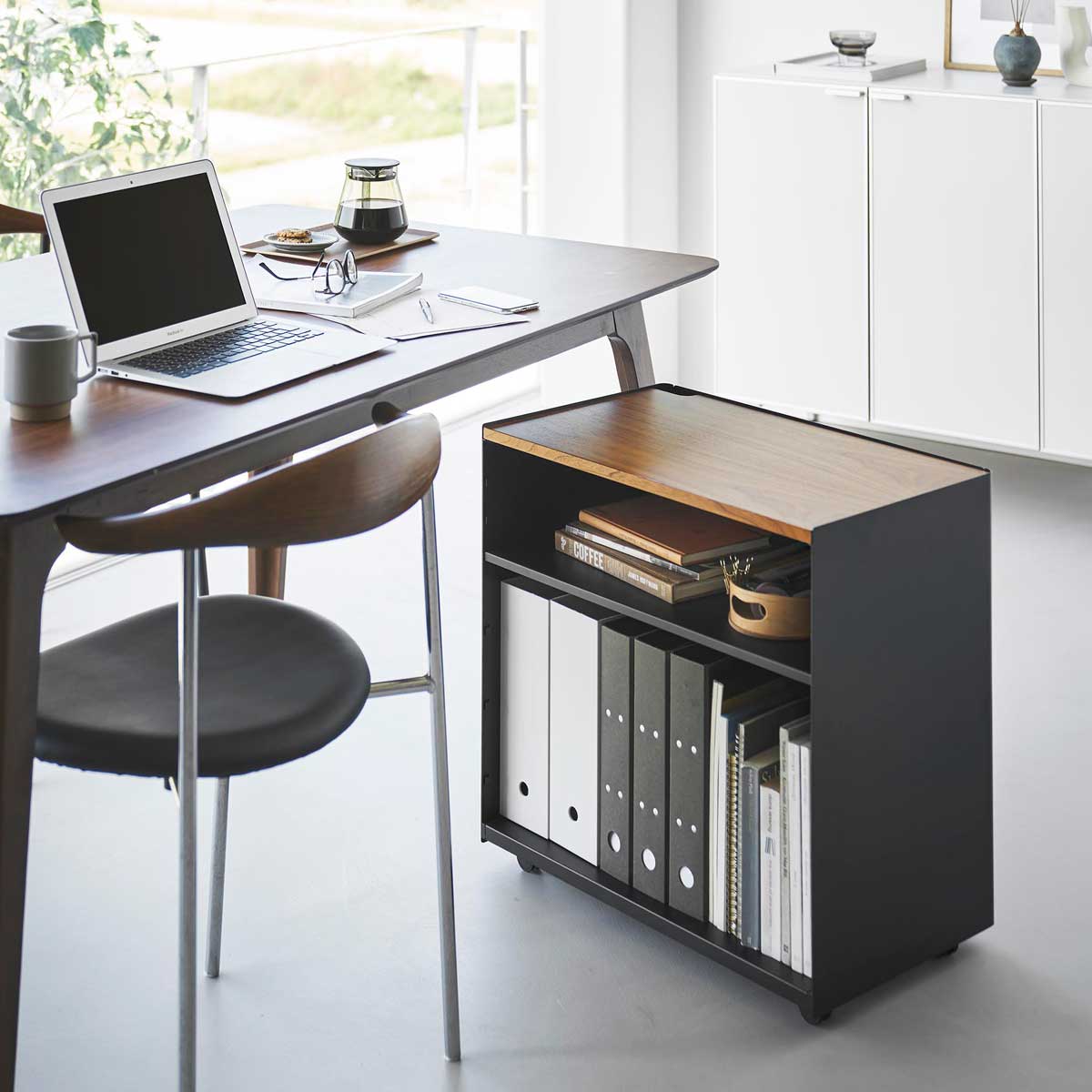 キャスター付きのデスクワゴン 隠して収納できるテレワークワゴン。 リビングにもピッタリ、隠して収納できるテレワークワゴンです。 最上段は作業台としての使用や、プリンターの設置にもおすすめです。 キッチンやランドリーでも活躍 棚板は収納する物に合わせて高さを調節することができます。 キャスター付きなので移動もしやすく、来客時にはワゴンを裏返せばサッと隠して収納することができます。 商品の情報 ・ブランド:YAMAZAKI(山崎実業)/日本 ・ジャンル:デスクワゴン ・主な素材:スチール 粉体塗装(本体、棚板)/天然木化粧繊維板 ウレタン樹脂塗装(天板)/ナイロン(キャスター) ・生産国:中国 ・サイズ:約W603xD353xH590mm(キャスター含む) ・内寸サイズ:約W585xD335xH510mm/D320mm(棚板、底板)/28mm(背面パネルと棚板、底板との隙間) ・重量:約14320g ・耐荷重:天板10kg/棚板7kg/底板15kg ※静止荷重 ・付属品:スパナ ・その他:お客様組立て品となります。 この商品の仲間たち tower タワー 隠せるテレワークワゴン 1424 ホワイト tower タワー 隠せるテレワークワゴン 1425 ブラック デスクワゴン 山崎実業 正規品 tower タワー 隠せるテレワークワゴン プリンターの設置にもおすすめ キャスター付き 脇机 収納棚 サイドワゴン 1425 ブラック 18,700 円