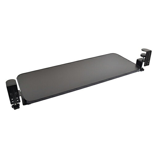 キーボード台を後付けすれば机の上を広く使える!かんたん取付のキーボードスライダーキーボード台を後付けすれば机の上を広く使える!かんたん取付のキーボードスライダー 机の上が狭いと感じたならばこれ! かんたんに取付ができるキーボードスライダーです。 幅が65cmあるのでフルキーボードを置くことも可能。 クランプ式で取り付け簡単だから、テレワーク時でも机を広く使えるようになります。 狭い机の上を広くする!後付けデスク パソコンを使っていると机の上に他に物を置けない。 もうちょっとだけスペースを確保できたら…。 そんな時に便利なのが「スライド式キーボードトレイ2」です。 今使っている机にかんたんにプラスできるのがキーボードトレイです。 スライド式だから使うときは引き出す、使わない時はデスク下に収めておけます。 限られたスペースの有効活用にぜひご使用ください。 フルキーボード設置可能 天板のサイズは約65×25cmあるので、大きめのフルキーボードとマウスを設置することができます。 その他書類や小物などを邪魔にならないように置いておくことが可能です。 クランプ式でかんたん取付 取付は簡単クランプ式で、いつも使っているデスクに取り付けることができます。 机を傷つけません。 クランプ式だから取り外しや、移動も簡単に行えます。 テレワーク時に自宅の机に取り付けて使用、仕事をしない時は外しておく、といった使い方もでできます。 姿勢も楽に! 長時間のパソコン作業だと姿勢が悪くなりがちに。 キーボードスライダーを使うことで、背筋が伸び正しい姿勢で作業を行うことができます。 取付可能な場所についての詳細は画像をご確認ください。 ●サイズ: 天板:幅650×高さ12×奥行250(mm) クランプ込:幅770×高さ120×奥行250(mm) ●重量:2300g ●付属品:天板、クランプ部2本、予備ネジ3本、日本語取扱説明書 ●耐荷重:5kg ●天板稼働域:最大47.5cm ●取付可能サイズ:机の天板の厚み約0.5〜8.5cm程度、幅80cm以上 ●素材:天板:ファイバーボード 金属部:SPCC ●注意事項: ※クランプの幅を変更するには別途プラスドライバーをご用意ください。 ※金属部は角がとがっている箇所があります。 組立時には怪我をしないように注意して行ってください。 ※必要以上に強い力をかけたり、耐荷重以上の重さの物を載せないでください。 ※取付前に適合や変形、破損、動作不良の無い事を確認してください。 ※記載されている物以外は付属いたしません。 ※落としたり強い衝撃を与えないでください。 ※分解しないでください。 ※本製品をご利用において生じる物品の破損は、補償の対象外となります。 ※小さなお子様の手が届くところで保管、使用しないでください。 ※ご使用中においてのお客様の過失による故障、破損、改造等はサポート保証の対象外となります。 ※正しく使用されない場合に生じた事故等について弊社での責任は負いかねます。 ※仕様は改善のため予告無く変更する場合があります。 ●パッケージサイズ:幅680×高さ125×奥行275(mm) ●パッケージ込み重量:2920g ●保証期間:購入日から6か月【注意事項】■沖縄・離島は別途送料(税込1,000円)が掛かります。 ■お取り寄せ品のためメーカーに在庫がない場合がございます。 予めご了承ください。 ■お客様都合による返品は承っておりません。 予めご了承ください。