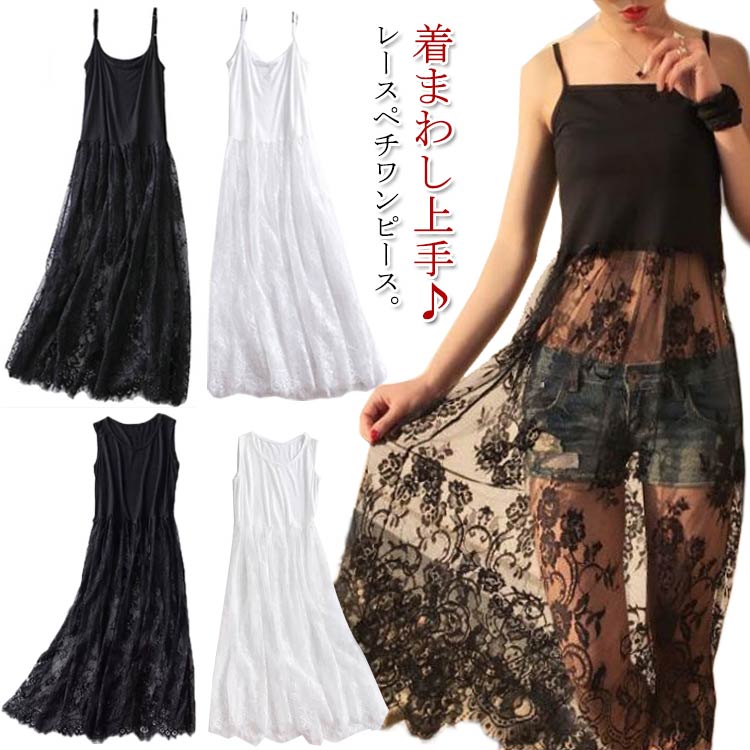 送料無料 ペチコート インナーワンピース レースワンピース レディース マキシワンピ 重ね着 チュール タンクワンピース 大きサイズ 白 黒 2,525 円