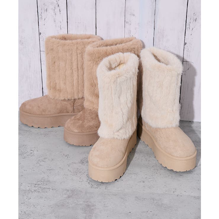 《存在感抜群の厚底ファームートンブーツ》ボリューム感たっぷりのファー切り替えデザインが目を惹くロング丈ブーツ。 内側はふわふわの裏ボアで暖かさも抜群。 厚底ソールでスタイルアップ効果もあり、冬の主役級アイテムに。 ■デザイン・厚底ソールで脚長効果を演出・ファー切り替えが高見えポイント・ロング丈で防寒性もしっかり確保■スタイリングスキニーをインしてカジュアルに、スカートやショートパンツで脚見せとのバランスを楽しむのもおすすめ。 シンプルコーデのアクセントにもなるアイキャッチブーツです。 寒さ対策もおしゃれ感も一度に叶う、冬の本命シューズです。 サイズ::本体:S:23.0-23.5cm甲幅8cmソール前高さ3.5cmソール後高さ4.5cm筒丈28cmM:23.5-24.0cm甲幅8.2cmソール前高さ3.5cmソール後高さ4.5cm筒丈28cm/L:24.0-24.5cm甲幅8.4cmソール前高さ3.5cmソール後高さ4.5cm筒丈28cm/LL:24.5-25.0cm甲幅8.6cmソール前高さ3.5cmソール後高さ4.5cm筒丈28cm■素材感透け感:なし裏地:なし伸縮性:なし※商品のお取り扱いに関しましては、商品に付属のアテンションカード、洗濯ネームをご覧ください。 原産国:中国※商品写真はできる限り実物の色に近づけるよう努めておりますが、 お使いのモニター設定、お部屋の照明等により実際の商品と色味が異なる場合がございます。 また、生産時期により、色・サイズ・デザインが多少異なる場合がございます。 あらかじめ御了承下さい。 返品・交換について購入後の交換は受け付けておりません。 予めご了承ください。 返品を希望される場合は購入履歴一覧の「ショップへの問い合わせ」よりお問い合わせください。 =========================複数配送先指定について1件の注文に対して、異なる住所への配送は対応出来かねます。 恐れ入りますが、異なる住所へ配送をご希望の場合、配送先毎に分けて注文いただきますようお願い申し上げます。 【シューズ・靴WOMEN】L/BE OAK S M L LLL/BE OAK 【10%OFFクーポン!1/16(金)1:59まで】GORGE 《厚底×ファー切替》レディース フェイクムートンブーツ ロング丈 裏ボア 防寒 冬 シューズ・靴 4,394 円