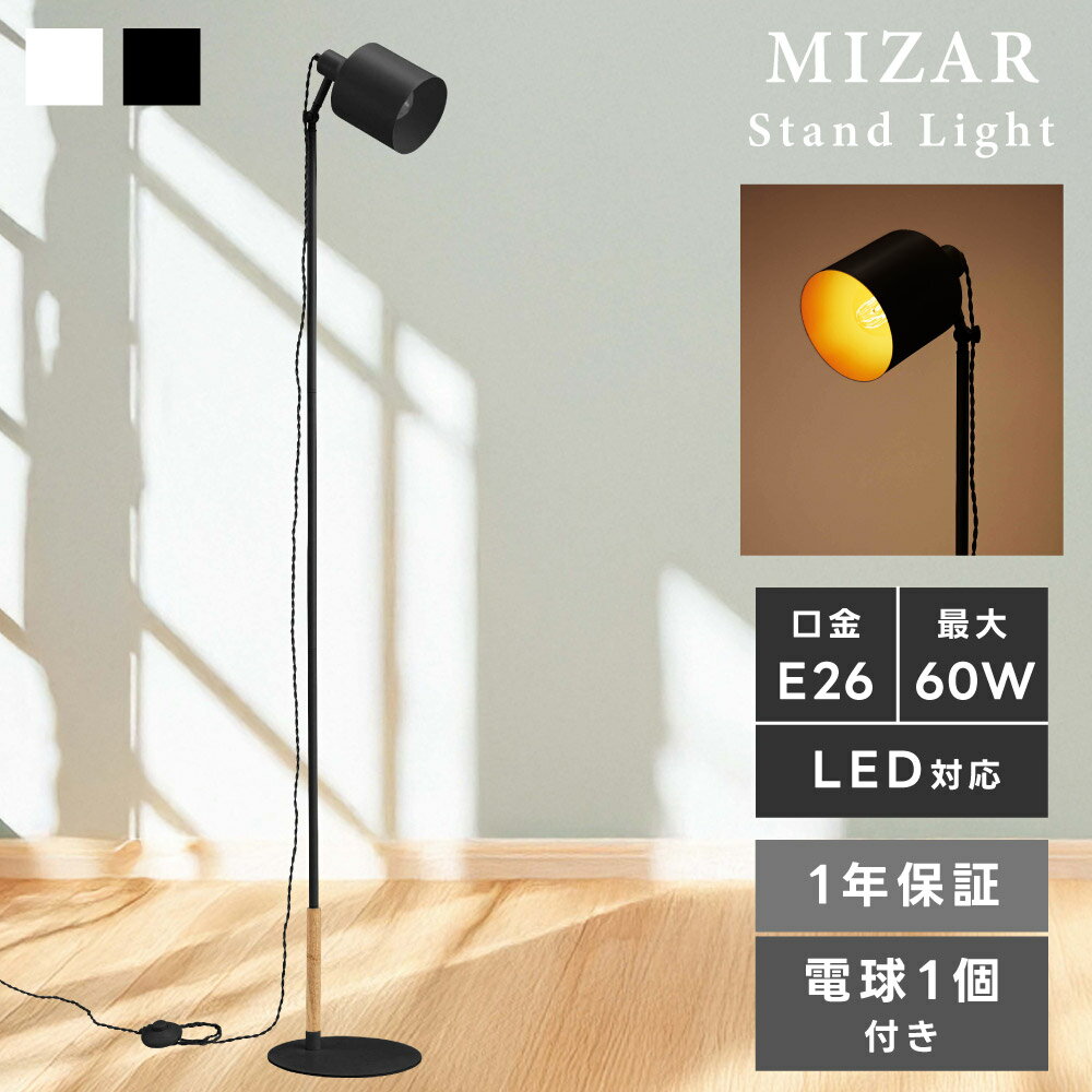 お買い物の前に ≫ よくあるご質問 ≫ 商品説明 ●スチール×木目調のインダストリアルな雰囲気を放つ、おしゃれなデザインのスタンドライトです。 ヘッド部分が可動するため、好きな角度で光を照らすことができます。 ●ON/OFF切替スイッチ付き コードには照明のON/OFFを切り替えることができるスイッチが付いています。 電源を抜き差しする手間が省けるためとても便利です。 ●エジソン電球1個付き 本製品には、エジソン電球が1個付属されています。 エジソン電球は一般的な電球とは少し異なり、フィラメントがくっきりと光る様子が見えるのが最大の特徴です。 あたたかみのある暖色で、カフェやバーのような落ち着いた明かりがお部屋をおしゃれに照らしてくれます。 ●LED電球にも対応 LED電球にも対応しておりますので、ご自宅で購入されたLED電球に付け替えてご使用いただくこともできます。 ●商品のお買い上げ日より1年間保証付き 購入日から1年間以内に本製品の電気系統部分で不具合が生じた場合は、無償交換の対象とさせていただきます。 ※電気系統の不具合以外(シェードや電球のキズ・破損など)については、保証の対象外となります。 ※お客様側の不手際によって発生した不具合や破損は保証の対象外となります。 メーカー希望小売価格はメーカーカタログに基づいて掲載していますページトップ スペック 商品詳細 サイズ: 幅25×奥行25-26.5×高さ155-175cm コード長:3m 材 質: スチール(粉体塗装)/天然木(ラバーウッド)/ラッカー塗装/アルミ 重 量: 約3kg 組 立: 組立必要(工具付属) 送 料:送料無料 ※北海道・沖縄・離島へのお届けは別途送料が加算されます。 検索キーワード: スタンドライト 155cm 160cm 170cm 175cm 可動 ヘッド 電球付き スイッチ 手元スイッチ フットスイッチ シンプル モダン 韓国 北欧 照明 照明器具 照明家具 ライト 明かり おしゃれ 木目 インダストリアル ブラック 黒 ホワイト 白 東谷 ●スチール×木目調のインダストリアルな雰囲気を放つ、おしゃれなデザインのスタンドライトです。 ヘッド部分が可動するため、好きな角度で光を照らすことができます。 ●ON/OFF切替スイッチ付き コードには照明のON/OFFを切り替えることができるスイッチが付いています。 電源を抜き差しする手間が省けるためとても便利です。 ●エジソン電球1個付き 本製品には、エジソン電球が1個付属されています。 エジソン電球は一般的な電球とは少し異なり、フィラメントがくっきりと光る様子が見えるのが最大の特徴です。 あたたかみのある暖色で、カフェやバーのような落ち着いた明かりがお部屋をおしゃれに照らしてくれます。 ●LED電球にも対応 LED電球にも対応しておりますので、ご自宅で購入されたLED電球に付け替えてご使用いただくこともできます。 ●商品のお買い上げ日より1年間保証付き 購入日から1年間以内に本製品の電気系統部分で不具合が生じた場合は、無償交換の対象とさせていただきます。 ※電気系統の不具合以外(シェードや電球のキズ・破損など)については、保証の対象外となります。 ※お客様側の不手際によって発生した不具合や破損は保証の対象外となります。