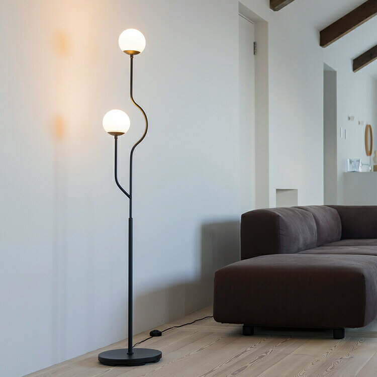 DETAILS インターフォルムでは珍しい2灯タイプのフロアライト。 枝分かれした形状と、光源を迂回させるラインデザインが特徴です。 マットブラックで仕上げたカラーがシャープでモダンな印象を与えつつも、街灯のようなやさしい光を灯します。 オブジェのような洗練された佇まいは消灯時にも健在。 お部屋の雰囲気を変えたい方や個性的な空間づくりをしたい方におすすめです。 スイッチは踏んで切り替えるフットスイッチを採用しました。 POINT1 カーブ 光源を回避するような大胆なカーブが電子回路を思わせるプレイフルなシルエットです。 おしゃれな街灯を思わせる佇まいを見せます。 お部屋の雰囲気を変えたい方や個性的な空間作りをしたい方におすすめです。 POINT2 上下 2つのガラスシェードを上下に配置しました。 光の拡散に新たな陰影が生まれ、奥行きのある空間演出が叶います。 間接照明を灯すことで新たな光と影が生まれ、いつもの空間に奥行きが増します。 POINT3 モノトーン モノトーンのカラーリングがモダンでハイセンスな存在感を際立たせます。 ベースはシンプルなフラットデザイン。 ツヤのないブラックカラーで落ち着きのある印象に。 商品サイズ 本体 / 幅280×奥行280×高さ1500(mm) シェード / 直径120(mm) コード / 2100(mm) 重量 4.9(kg) 材質 スチール、ガラス、アルミ カラー ブラック 仕様 口金 / E17 40W相当まで対応(電球別売) 対応電球サイズ / 直径37×全長70mm以下 LED電球専用 フットスイッチ(点灯→消灯) 注意事項 お買い物の際は、会社概要の「その他の注意点」を必ずご確認ください。