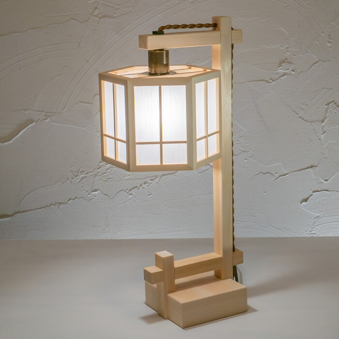 和風照明静岡で指物師が伝統技法を守りながら、一つ一つ大切に手作りしています。 シェード部分には合成樹脂でコーティングした、強化和紙(ワーロン)を使用していますので、和紙の風合いはそのままに破れにくく、水拭きもできる実用的な照明に仕上がっています。 和紙を通した穏やかな光と伝統をアレンジしたデザインが趣きと品格をプラスし、上質な空間に仕立てます。 ■擦りガラスの様な模様のワーロンを貼ってあるランプです。 ■洋室にも使えるデザイン!■置く角度によって変わる表情も魅力です。 ■E17-60W(ミニクリプトン球付)■φ220×高270■中間スイッチ(ON-OFF)■コンセント接続■コード長1.7m■檜・ワーロン(ホワイトフォール+カラー)■商品の特長・仕様に関する詳細はメーカーホームページでもご覧頂けます。 ※こちらの商品はメーカー直送品となります。 メーカー希望小売価格はメーカーサイトに基づいて掲載しています。