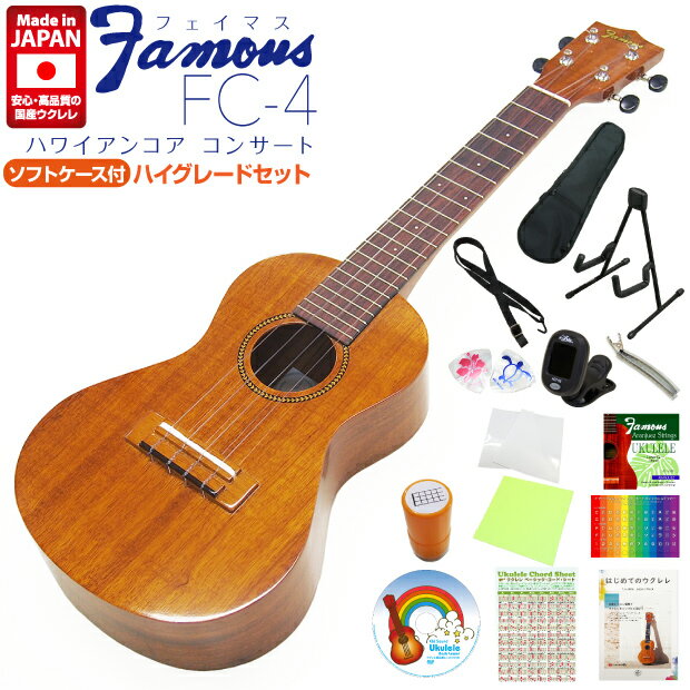 Famous フェイマス 国産ウクレレ FC-4 コンサート ハイグレード15点セット ハワイアンコア(安心の日本製)(FC-5Gの上位モデル)(ソロ向き)(u) 65,200 円