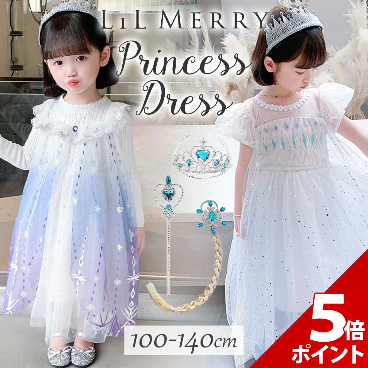 【3点セット付き】エルサ ドレス 子供 キッズ 雪の女王 長袖 半袖 衣装 プリンセス ドレス 衣装 コスチューム 誕生日 女の子 子ども プリンセスドレス 高級 仮装 コスプレ お姫様 コス プレゼント ウィッグ 付け毛 ティアラ LiL Merry ・淡いブルーのオーガンジーにたくさんのリボンが散りばめられた、幻想的で華やかなデザイン。 お子様がプリンセス気分を存分に味わえます。 ・質感にこだわったしっかりした生地を使用し、細部まで丁寧に仕上げられた本格的なドレス。 長時間着ても美しいシルエットが保たれます。 ・ウィッグやアクセサリーがセットになっており、ヘアスタイルまで完璧に再現。 まるで本物の雪の女王のように仕上がります。 ・お子様の体型に合ったサイズを選べるので、より快適に美しく着こなせます。 ・ハロウィンや誕生日、発表会など、お子様の大切なイベントで大活躍。 どんなシーンでもプリンセスのような輝きを放ちます。 ご購入から30日間はメーカー保証付きです。 メーカー希望小売価格はメーカーサイトに基づいて掲載していますe1045 ・淡いブルーのオーガンジーにたくさんのリボンが散りばめられた、幻想的で華やかなデザイン。 お子様がプリンセス気分を存分に味わえます。 ・質感にこだわったしっかりした生地を使用し、細部まで丁寧に仕上げられた本格的なドレス。 長時間着ても美しいシルエットが保たれます。 ・ウィッグやアクセサリーがセットになっており、ヘアスタイルまで完璧に再現。 まるで本物の雪の女王のように仕上がります。 ・お子様の体型に合ったサイズを選べるので、より快適に美しく着こなせます。 ・ハロウィンや誕生日、発表会など、お子様の大切なイベントで大活躍。 どんなシーンでもプリンセスのような輝きを放ちます。 ■セット内容■ 5点セット(ドレス、マント、髪飾り、ティアラ、ステッキ) ※セット内容以外の小物・着用品は付属しておりません。 ■サイズ(約)■ 100:身丈62cm 胸囲56cm以内 ウエスト50-60cm 110:身丈70cm 胸囲58cm以内 ウエスト53-62cm 120:身丈72cm 胸囲64cm以内 ウエスト56-65cm 130:身丈78cm 胸囲66cm以内 ウエスト60-69cm 140:身丈85cm 胸囲67cm以内 ウエスト60-70cm マント(共通):長さ144cm ※寸法は平置きにて計測し、1-3cm程度の誤差がある場合がございます。 髪飾り:全長48cm 飾り幅8.5cm ステッキ:長さ30.5cm ティアラ:カチューシャ内幅10.5cm ■素材■ コットン、ナイロン ※商品写真はできる限り実物の色に近づけるよう調整しておりますが、お客様のお使いのモニター設定、お部屋の照明等により実際の商品と色味が異なる場合がございます。 恐れ入りますが色味が理由によるご返品はお受けしておりませんので、予めご了承ください。 ご注文前にご確認下さい ●よくあるご質問● 【マラソン限定★P+5倍!】【3点セット付き】エルサ ドレス キッズ 子供 雪の女王 半袖 衣装 プリンセス ドレス 衣装 コスチューム 誕生日 女の子 子ども プリンセスドレス 高級 仮装 コスプレ お姫様 コス プレゼント ウィッグ 付け毛 ティアラ ステッキ LiL Merry 4,499 円