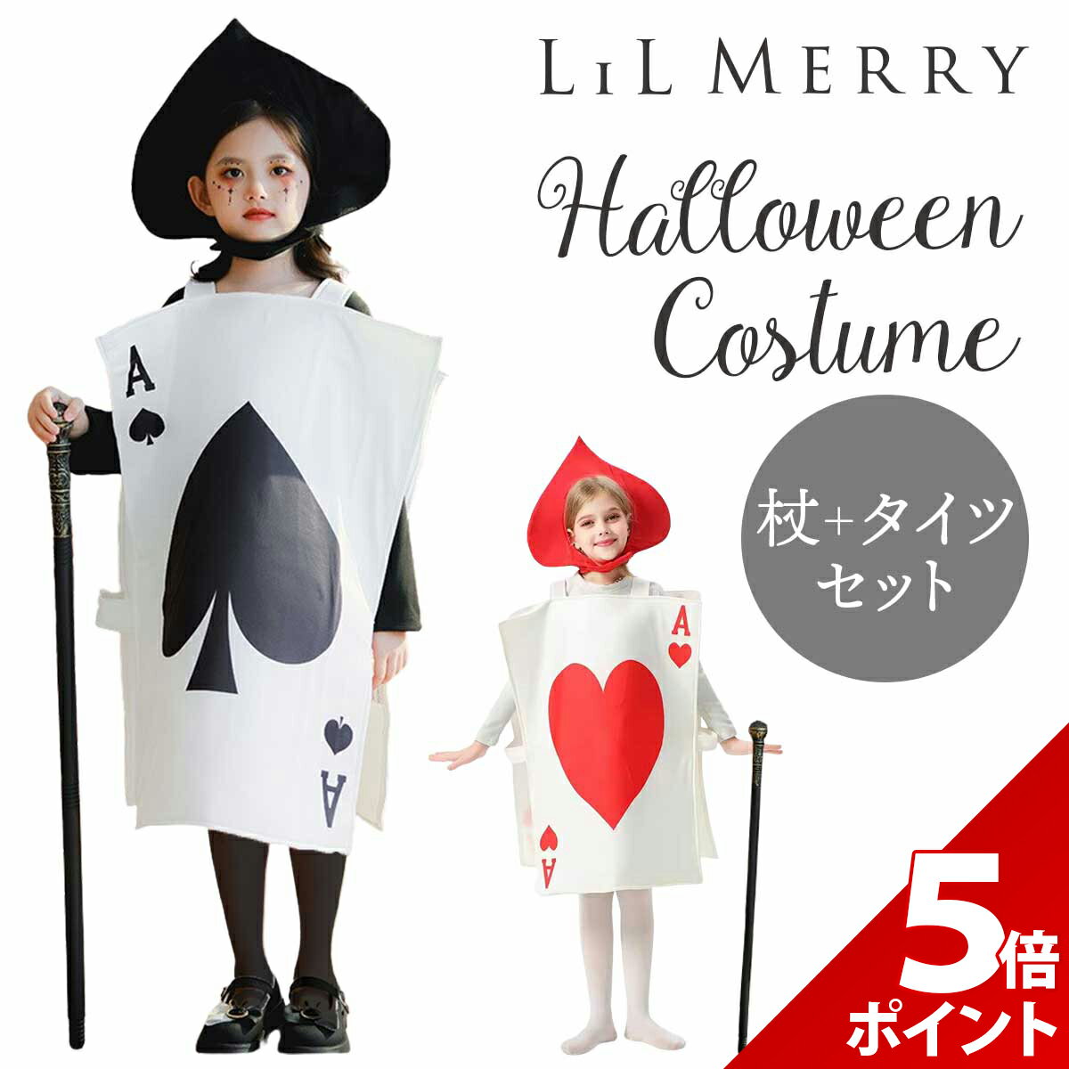 【杖&タイツセット】ハロウィン トランプ コスプレ 子供 面白 仮装 キッズ トランプ兵 衣装 着ぐるみ コスチューム おもしろ 面白い 男の子 女の子 ・帽子・杖・タイツの豪華3点セットで、一瞬で本格的なコスプレが完成します。 ・衣装はかぶるだけでお子様でも簡単に変身できます。 すぐにトランプのキャラクターになりきれます。 ・トランプモチーフがインパクト大!イベントやSNSで注目間違いなしのユニークなコスチュームです。 ・しっかりとした生地感で、チープに見えない本格派コスチューム。 イベントでのアクティブな動きにも対応できます。 ・ハロウィンはもちろん、パーティーや、テーマイベントなど幅広く使える万能なコスチュームです。 ご購入から30日間はメーカー保証付きです。 e1104 ・コスチューム・帽子・杖・靴下の豪華4点セットで、一瞬で本格的なコスプレが完成します。 ・衣装はかぶるだけでお子様でも簡単に変身できます。 すぐにトランプのキャラクターになりきれます。 ・トランプモチーフがインパクト大!イベントやSNSで注目間違いなしのユニークなコスチュームです。 ・しっかりとした生地感で、チープに見えない本格派コスチューム。 イベントでのアクティブな動きにも対応できます。 ・ハロウィンはもちろん、パーティーや、テーマイベントなど幅広く使える万能なコスチュームです。 ■セット内容■ 子供用ハロウィンコスプレセット 4点セット(コスチューム、帽子、靴下、杖) ■サイズ(約)■ 120-150cm:縦65x横49cm 着丈73cm ウエスト126cm以内 帽子:首回り39cm以内 靴下:全長39.5cm 杖:全長81cm ※寸法は平置きにて計測し、1-3cm程度の誤差がある場合がございます。 ■カラー■ 全2色(ブラック、レッド) ■素材■ コスチューム:ポリエステル 靴下:綿、ポリエステル ※商品写真はできる限り実物の色に近づけるよう調整しておりますが、お客様のお使いのモニター設定、お部屋の照明等により実際の商品と色味が異なる場合がございます。 恐れ入りますが色味が理由によるご返品はお受けしておりませんので、予めご了承ください。 ご注文前にご確認下さい ●よくあるご質問● 【マラソン限定★P+5倍!】【杖&タイツセット】ハロウィン トランプ コスプレ 子供 面白 仮装 キッズ トランプ兵 衣装 着ぐるみ コスチューム おもしろ 面白い 男の子 女の子 4,999 円