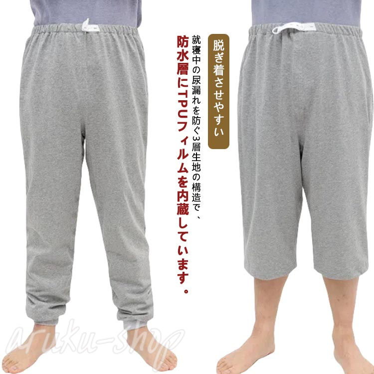 3タイプが選べる!3層構造だから漏れにくい就寝中の尿漏れを防ぐ3層生地の構造で、防水層にtpuフィルムを内蔵しています。 介護する側もされる側も安心しておやすみいただけます。 脱ぎ着させやすい腰回りは柔らかで伸びのよい総ゴム仕様で、優しい履き心地です。 着脱も簡単でおむつ交換、着替えも楽に行えます。 ウエスト調整が可能 ウエスト部分はボタンホール付きゴムで調整が可能です。 しっかりフィットし動いてもズレにくいので、ウエスト部分からの尿漏れも防ぎます。 着け心地の良い素材感 通気性が良い上質な綿素材を使用しています。 肌ざわりが良く快適な着用感です。 様々な用途で使える介護時はもちろん、入院時で介助が必要な時、リハビリパンツとしても様々にお使いいただけます。 サイズ s m l xl 2xl 3xl サイズについての説明 サイズ:写真通りs体重35-45kg m体重45-55kg l体重55-65kg xl体重65-75kg 2xl体重75-85kg 3xl体重85-100kg※上記サイズは平置き実寸になります。 サイズ表の実寸法は商品によって1-3cm程度の誤差がある場合がございます。 ごください。 素材 コットン tpu 竹繊維 色 長ズボンタイプ 七分丈タイプ 五分丈タイプ 備考 ●サイズ詳細等の測り方はスタッフ間で統一、徹底はしておりますが、実寸は商品によって若干の誤差(1cm〜3cm )がある場合がございますので、予めごください。 ●商品の色は、撮影時の光や、お客様のモニターの色具合などにより、実際の商品と異なる場合がございます。 あらかじめ、ごください。 ●製品によっては、生地の特性上、洗濯時に縮む場合がございますので洗濯時はご注意下さいませ。 ▼色味の強い製品によっては他の衣類などに色移りする場合もございますので、速やかに(脱水、乾燥等)するようにお願いいたします。 ▼生地によっては摩擦や汗、雨などで濡れた時は、他の製品に移染する恐れがございますので、着用の際はご注意下さい。 ▼生地の特性上、やや匂いが強く感じられるものもございます。 数日のご使用や陰干しなどで気になる匂いはほとんど感じられなくなります。