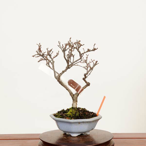 ※冬季は寒さの為、葉が赤くなります。 写真が必要な方はご連絡ください。 (サイズ)樹高(上下)15センチ左右20センチ幹径(根元)3.5センチ樹齢14年(撮影日:2026年2月17日) ※写真掲載の飾(台)は対象外です。 盆栽と鉢のみの販売ですのでご理解の上、ご注文下さい。 ★苔張りをご希望の方は、備考欄に「苔張り希望」とご記入ください。