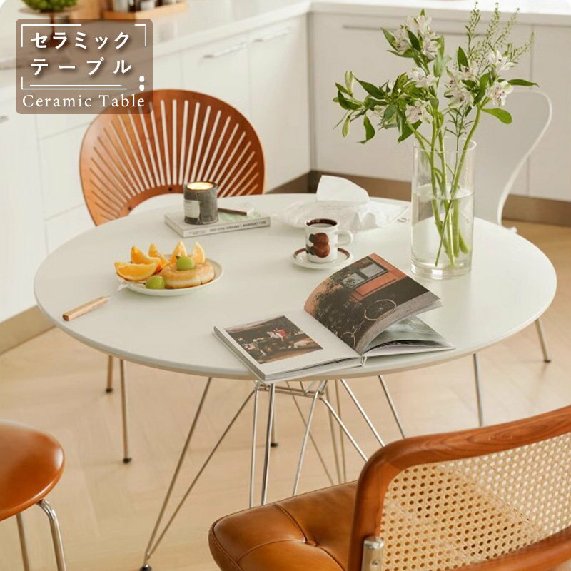 【5年保証】【組立設置有】ダイニングテーブル 丸 白 120cm 80cm 100cm 円形 円卓 丸テーブル 4人掛け 二人 2人 セラミック天板 食卓テーブル 円形 円型 単品 おしゃれ シンプル インテリア 家具 北欧 モダン 韓国インテリア 艶消し テーブルのみ 白 107,982 円