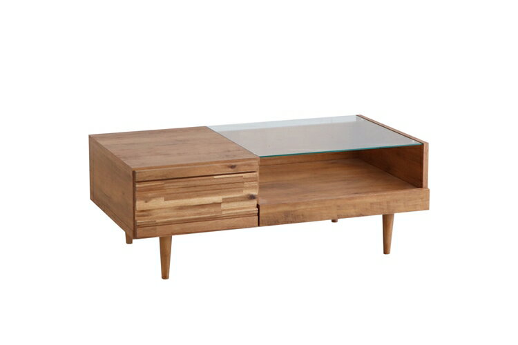 凹凸を出したアカシア無垢材が、立体感と奥行きを出してくれています。 ガラス越しに魅せる収納は、引き出し機能がついており便利に活用できます。 細身の脚にも拘っているおしゃれなアイテム ガラス天板下の棚はスライドテーブル仕様で出し入れが簡単。 商品名アルグ 100リビングテーブル サイズW1000×D540×H370 材質天板:強化紙化粧板 本体:プリント化粧板 前板:アカシア無垢(オイル塗装) 脚部:ラバーウッド(ウレタン塗装)H=120mm 5mm強化透明ガラス 備考生産地:日本 送料送料無料北海道・沖縄・離島を含む(一部配送不可地域)のご注文は配達不可のためキャンセルさせて頂きます。 インテリア 人気 アルグ 100リビングテーブル センターテーブル ローテーブル 高級感 引き出し 収納 木製 幅100 ソファーテーブル 長方形 43,170 円