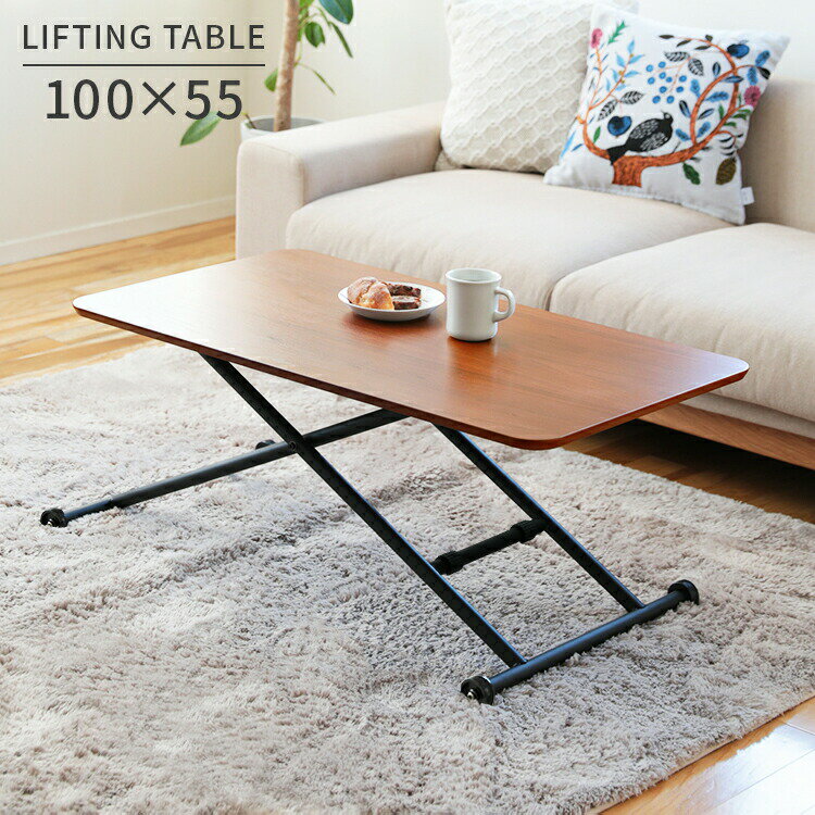 DETAILS・商品詳細 天板に天然木ウォールナット突板を使用した高級感と機能性を兼ね備えた昇降テーブル。 ソファと一緒にリビングでセンターテーブルとして、2人暮らしならダイニングテーブル。 その他にもパソコンテーブル、ローテーブル、座卓、作業台、とシーンに合わせて高さを調節できるのでとても実用的です。 レバーひとつで高さ調節ができ、女性や力の弱い方でも簡単に操作が可能です。 無段階で高さを変えることができるため、「あとちょっと高ければ。 」というようながっかり感がありません。 他のテーブルや作業台と並べて使用するときも、天板の高さを揃えられます。 さらに、キャスター付きで移動も楽々。 カラーは落ち着いたブラウンにフレームがブラックとスタイリッシュなデザインです。 テーブルを何台も買いたくないという方にもオススメです。 商品サイズ 本体サイズ:幅101?117×奥行き55×高さ10?70(cm) 材質 天板:天然木ウォールナット材化粧繊維板(ラッカー塗装) 脚:スチール(エポキシ樹脂粉体塗装) 重量 約 15(kg) カラー ブラウン 仕様 ガス圧 昇降式(無段階) 完成品 注意事項 本製品は木材の特性上、傷がつきやすく繊細な商品です。 お取り扱いにはご注意下さい。 また、天然木のため品質やパーツにより色調や木目の違い、表面の小さな凹凸、節等がある場合がございます。 予めご了承ください。 熱い物を直接置かないで下さい。 変色する原因となります。 変更情報 2025年10月3日:商品サイズを幅100?115×奥行き55×高さ11.5?70(cm)→幅101?117×奥行き55×高さ10?70(cm)に変更しました。 2025年10月3日:天板の色を変更しました。 2025年10月3日:キャスターとレバーの仕様を変更しました。 備考 お買い物の際の注意事項は、会社概要の「その他の注意点」を必ずご確認ください。 商品紹介 POINT1 高さは10?70センチの無段階調整 レバーひとつで簡単に昇降可能です。 天板を下げるときは片手で端のレバーを上げ、片手で天板中央よりやや端に手をあて体重を掛けてください。 真下に体重を掛けるより斜め下(外側)に押すと下げやすいです。 天板を上げるときはレバーを上げ、天板のフチを持ち上げながら調節してください。 POINT2 折りたためば、こんなにも薄くなります 折りたたんだ際の高さはわずか10cm。 使わない時はソファやベッドの下に、または家具の隙間に収納することができます。 普段はしまっておいて、来客用のセカンドテーブルとしてさっと取り出せるようにしておくといいですね。 POINT3 この天板サイズが使いやすい! ノートパソコンを広げてもサイドに十分な作業スペースを確保できる、幅100cmの天板です。 ダイニングテーブルやデスクとして使うときにも重宝します。 奥行きは55cmとスリムなタイプなので、一人暮らしのワンルームでも邪魔になりません。 POINT4 天然木ウォールナットを贅沢に使用 天板には天然木ウォールナット材の突板を使用。 ウォールナットは木目のとても美しい、世界三大銘木のひとつです。 使うほどに味の出る、天然木ならではの経年変化も楽しみな1台です。 POINT5 臨時の延長テーブルとして大活躍 メインで使っているテーブルに昇降テーブルを並べることで、あっという間に大人数で囲める食卓の出来上がり!来客の際に便利です。 ダイニングテーブルだけではなく、ローテーブルとも天板の高さをそろえることができるので、床座式のパーティにももちろん大活躍。 他にも、料理する際にサブの作業台として用意するのも便利です。 これ1台あれば、日常のいろんなシーンに活用できます。