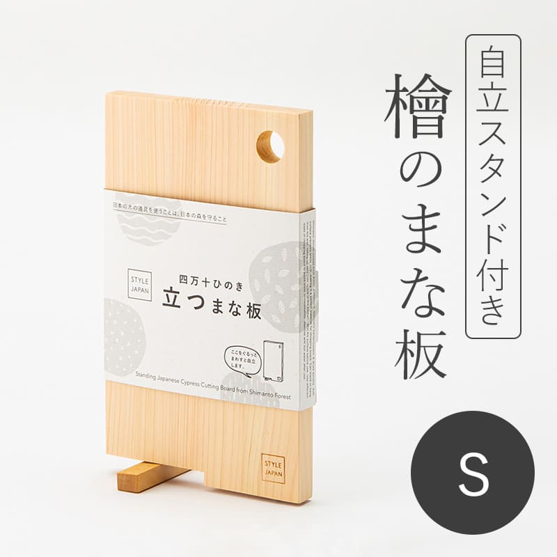 サイズ約 幅13×奥行1.5×高さ22(cm)重量約 200g内容量1個材質本体:四万十ひのきスタンド部分:サクラネジ:ステンレス滑り止め:ニッケル生産国日本製食器洗い乾燥機使用不可備考※天然素材により、木目や色、重さは表記と異なる場合があります区分返品・キャンセル区分(小型商品)ギフトラッピングページを見るまな板カテゴリから探す●油脂分が豊富で抗菌・抗カビ効果が高い四万十ひのきのまな板です。 ●一人暮らしの方やサブまな板として大活躍のSサイズです。 ●自立できるスタンドが付いているので、場所をとらずに乾燥と収納ができます。 ●引っ掛け穴があるので、フックにかけて収納することができます。 ●使用後はブラシで擦るだけなので、お手入れも簡単です。 ●汚れが付着するのを防ぎ、長くきれいに使うために、使用する前に両面を水で濡らして下さい。 おすすめポイント料理が楽しくなるひのきのまな板 Sサイズ豊かな森を育むために伐採した、間伐材を使ったひのきのまな板です。 一人暮らしではメインまな板として、ファミリーではサブまな板として大活躍のSサイズです。 木のまな板の「とんとん」と響く包丁の音とひのきのさっぱりした使用感と香りでリズムよく調理が進み、料理が楽しくなります。 最高級木材の四万十ひのき高知県四万十川流域で取れる四万十ひのきは、油分が多く、素早く乾くので、黒ずみしにくい素材です。 また天然の抗菌力でバクテリアの繁殖を抑え、まな板に肉や魚の匂いがつくのを防ぐ効果があります。 適度な柔らかさで食材がしっかり切れるのはもちろんのこと、切る時の腕の負担も軽減し、包丁の刃にも優しいので、切れ味も長持ちします。 スタンド付きで乾燥と収納ができるスタンドを90度回転させることで、垂直に自立し、置き場を選ばず収納していただけます。 また全面しっかり乾かすことができるので衛生的で、乾きにくいまな板の上下とフック穴には防水加工を施しているので、黒ずみしにくくなっています。 商品詳細軽くて使いやすい厚さはわずか1.5cm、重さはリンゴより軽い200gです。 薄くて軽いので、出し入れも洗うのもラクにできます。 便利なフック穴色々な使い方ができる便利なフック穴がついています。 まな板を持ち上げる時に指をかけたり、まな板からお鍋に食材を移す時に使ったり、吊るして収納することもできます。 用途やスペースに応じて選べる3サイズ用途やスペースに応じて使い分け、基本的な家庭料理をこなせる3サイズをつくりました。 薬味やフルーツなどちょこっと切りにSサイズ、お肉などの通常使いにMサイズ、大きめ野菜にはLサイズと使い分けることで、お料理も片付けも楽になります。 省スペースに収まるまな板の厚みはどれも1.5cmなので、3枚揃えても調理台の空きスペースにまとめてコンパクトに収納できます。 自然環境の維持日本の森を守る間伐材を使ったまな板にパッケージはスマートパピエというゴマの表皮を使用した未利用資源リサイクルペーパーを採用しています。 使用方法長くお使いいただくために・使用する前に両面を水で濡らして下さい。 汚れが付着するのを防ぎ、長くきれいに使えます。 ・使用後は、水を流しながらブラシやたわしで両面を擦り洗いし、よく乾かしてください。 両面同じように洗うことで反りを防ぎます。 ・洗剤を使う場合は、中性洗剤を使い、特ににおいや汚れが気になる時は粗塩でこすり、熱湯をかけて下さい。 ※漂白剤は使用しないでください。 ご注意点※ひのきのまな板は、表面や側面からヤニが出てくることがあります。 ヤニには雑菌の繁殖を抑える抗菌作用があるため、ヤニが多い程、良質なひのきとされ、水に強く黒ずみを防ぐことが出来ます。 ヤニが気になる場合は、お湯で洗い流して下さい。 製品化されても木は生きています。 ひとつひとつ個性のある木を楽しんでください。 シリーズ紹介SサイズMサイズLサイズ関連キーワード:調理 料理 台所 キッチン ツール 調理器具 キッチン用品 台所用品 調理道具 調理用品 下ごしらえ おすすめ オススメ おしゃれ お洒落 オシャレ 丈夫 万能 卓上 便利 役立つ 吊り下げ かけて 収納 シンプル ナチュラル 肉 魚 野菜 ギフト 贈り物 プレゼント お祝い 新生活 LH8891 関連商品はこちらまな板 24×39cm STYLE JAPAN5,390円まな板 18×30cm STYLE JAPAN4,290円まな板 木製 23cm×21cm セレクト103,100円まな板 S 木製 薄型 ひのき 1,870円まな板 23×21cm SELECT100×ム5,480円まな板 L 木製 薄型 ひのき 3,100円まな板 M 木製 薄型 ひのき 2,400円まな板 約7.5×20cm ひのき ちいさなま1,770円まな板 18cm 木製 ひのき 日光桧 3,620円まな板 S 木製 TEUD カッティングボード4,950円 まな板 30cm かまぼこ型 ひのき スタン4,950円 まな板 36cm ひのき スタンド付き 食洗3,980円 まな板 13×22cm STYLE JAPAN ひのきのまな板 スタンド式 Sサイズ ( 木製 ひのき まないた 俎板 マナイタ コンパクト カッティングボード 日本製 天然木 檜 ヒノキ 木 薄型 スタンド付き S サイズ 抗菌 抗カビ ) 