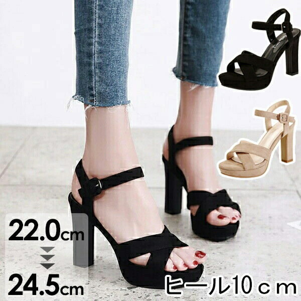 サンダル ハイヒール ヒール10cm 着心地よい 太ヒール 安定感 レディース ブラック 靴 大人 春夏 ブラック ベージュ 22.0/22.5/23.0/23.5/24.0/24.5グローリーパーク 4,300 円