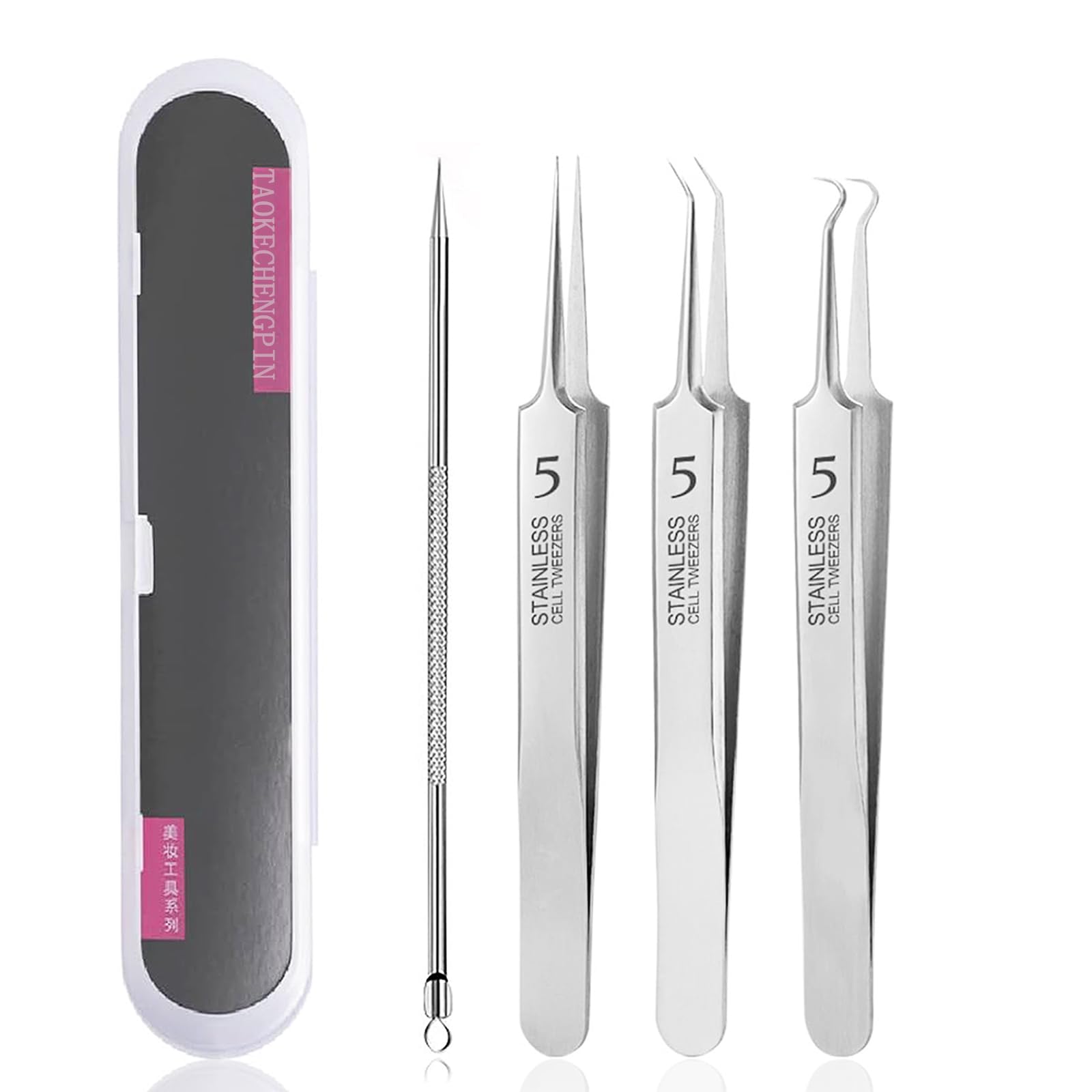 【送料無料】YUNXIASW 角栓取り 4本セット ニキビ取り 毛抜き ニキビ取り 黒ずみ取り ステンレス製 携帯便利 収納ケース付き 1,459 円