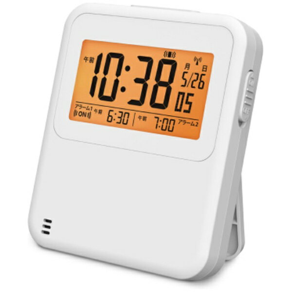 付属品:電池(単2マンガン×2個)※モニター用としてマンガン電池を添付しています電波修正機能(40kHz/60kHz自動選局・受信OFF機能つき)、自動点灯OFF機能、液晶パネル角度調節、2099年までのフルオートカレンダー機能、電子音アラーム(ダンダントーン)、スヌーズアラームオートストップ(約5分間)、選べるスヌーズ機能(約5分、ステップダウン、無し)、音量切替つき2チャンネルアラーム、3モード表示切替機能(時刻モード/カレンダーモード/温度・湿度モード)温度湿度表示(温度測定範囲:0℃?40℃ 測定精度:±2℃ 湿度測定範囲:25%RH?85%RH 測定精度:±8%(25℃))12時間制/24時間制切替式、ライト、シールシートつき知りたい情報を選んで大きく表示。 夜でもはっきり見える自動点灯機能も備えて、使いやすさが大幅アップ! ◆電子音 電子的に合成したアラーム音です。 ◆スヌーズ アラームを止めても数分後に再び鳴り出す機能です。 ◆一発鳴り止め アラームを一度止めるともう鳴らないので止め忘れの心配がありません。 ◆音量切替 メロディやアラームの音量の切替ができます。 (大・小など) ◆ライト 小さな電球やLEDライトが文字板面を照らす機能です。 ◆フルオートカレンダー うるう年でも修正がいらないカレンダーです。 ◆温度 温度を表示します。 お部屋のコンディション管理に便利です。 ◆湿度 湿度を表示します。 お部屋のコンディション管理に便利です。 ◆アラームモニター アラーム音をアラームセット時刻以外にも聞くことができます。 ◆電池切れ予告 電池切れが近づくとお知らせします。 秒針が12時位置で停止するタイプと、デジタルの液晶面に電池切れマークを表示するタイプがあります。 ◆標準電波クロック 正確な時刻情報をのせた電波を受信し、 自動的に表示時刻を修正するクロックです。 ご使用の際は、 できるだけ電波を受けやすい窓際などに置き、 電波ノイズの発生する場所は避けてください。 ●電波を受信していないときは、クオーツの精度で作動します。 ●また以下のような場所では正確に受信できない場合がありますので、 あらかじめご了承ください。 ・ビルの中、ビルの谷間、地下。 ・高圧線、テレビ塔、電車の架線の近く。 ・テレビ、冷蔵庫、エアコン、空気清浄機、パソコン、ファクシミリ等の 家電製品やOA機器の近く。 ・工事現場、空港の近くや交通量の多い所など、 電波障害の起きる所。 ・乗り物の中。 (自動車、電車、飛行機など。 ) ・その他電波ノイズを発生させるものの近く。 ・スチール机等の金属製の家具の上や近く。 ※受信可能地域以外でも条件によっては受信可能な場合があります。