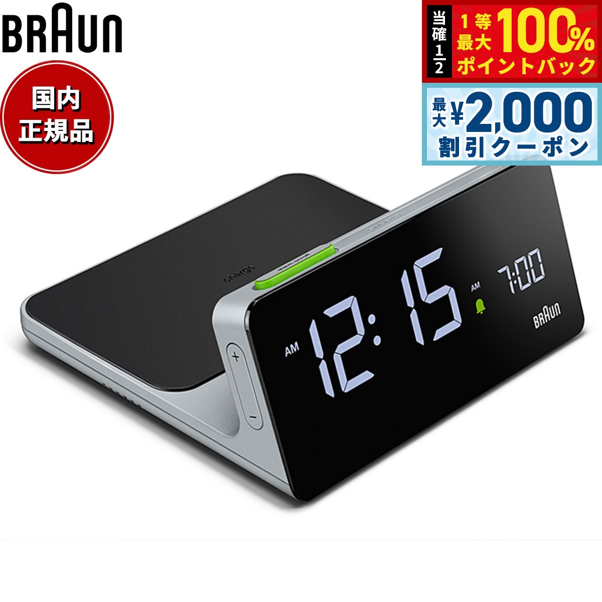【15日限定!2000円OFFクーポン&抽選で最大10000ptバック】BRAUN ブラウン アラームクロック Qiワイヤレス充電 BC21G スリム デジタル 目覚まし時計 置時計 Digital Clock 140mm グレー 22,000 円