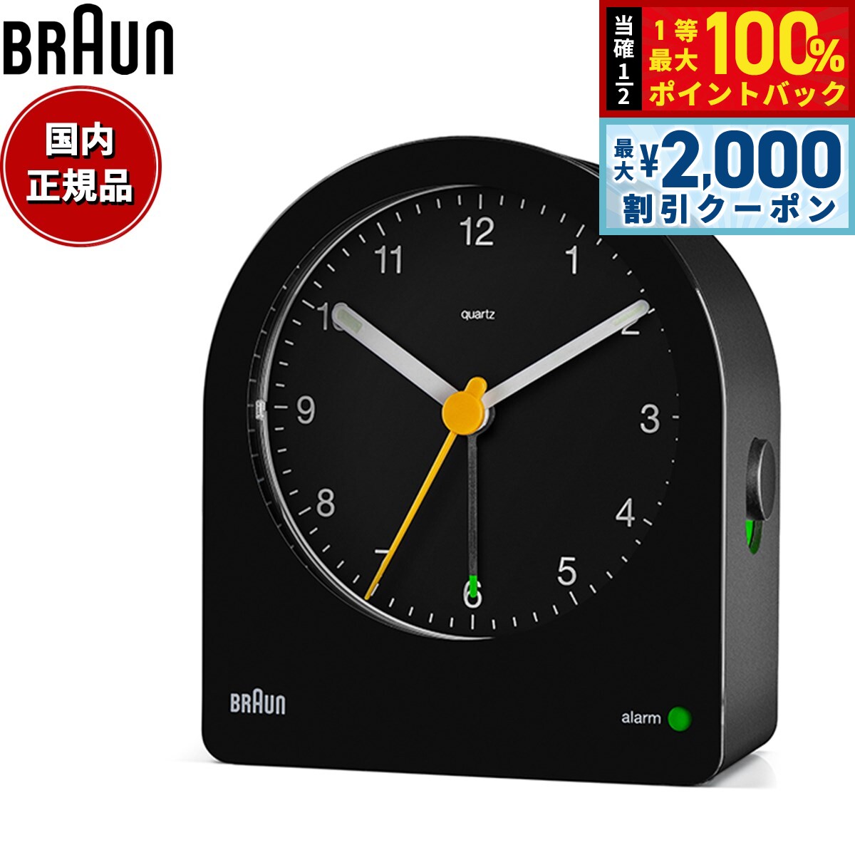 【15日限定!2000円OFFクーポン&抽選で最大10000ptバック】BRAUN ブラウン アラームクロック BC22Y アナログ 目覚まし時計 置き時計 Alarm Clock 82mm イエロー 8,580 円