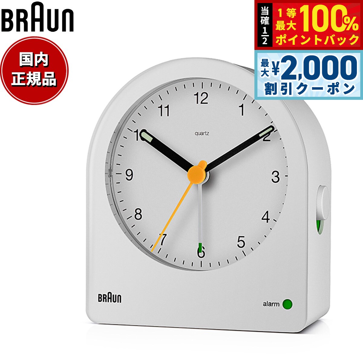 【15日限定!2000円OFFクーポン&抽選で最大10000ptバック】BRAUN ブラウン アラームクロック BC22W アナログ 目覚まし時計 置時計 Alarm Clock 78mm ホワイト 8,580 円