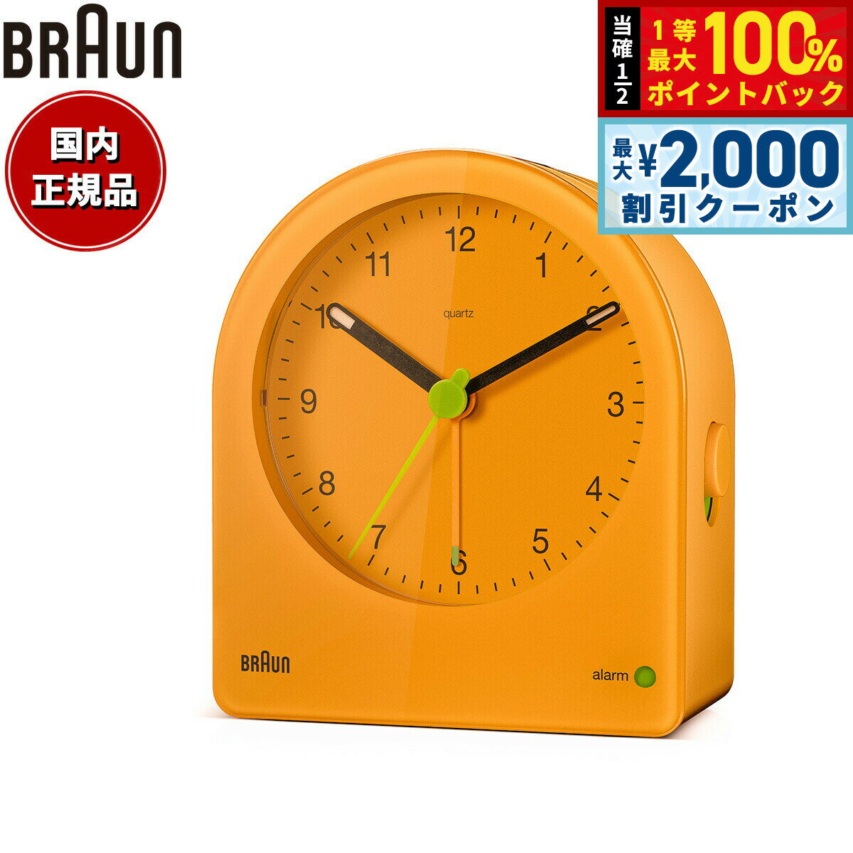 【15日限定!2000円OFFクーポン&抽選で最大10000ptバック】BRAUN ブラウン アラームクロック BC22GN アナログ 目覚まし時計 置き時計 Alarm Clock 82mm グリーン 8,580 円