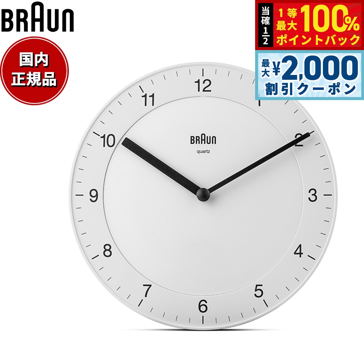 【15日限定!2000円OFFクーポン&抽選で最大10000ptバック】BRAUN ブラウン ウォールクロック BC17W アナログ 掛け時計 Classic Wall Clock 300mm ホワイト 12,650 円