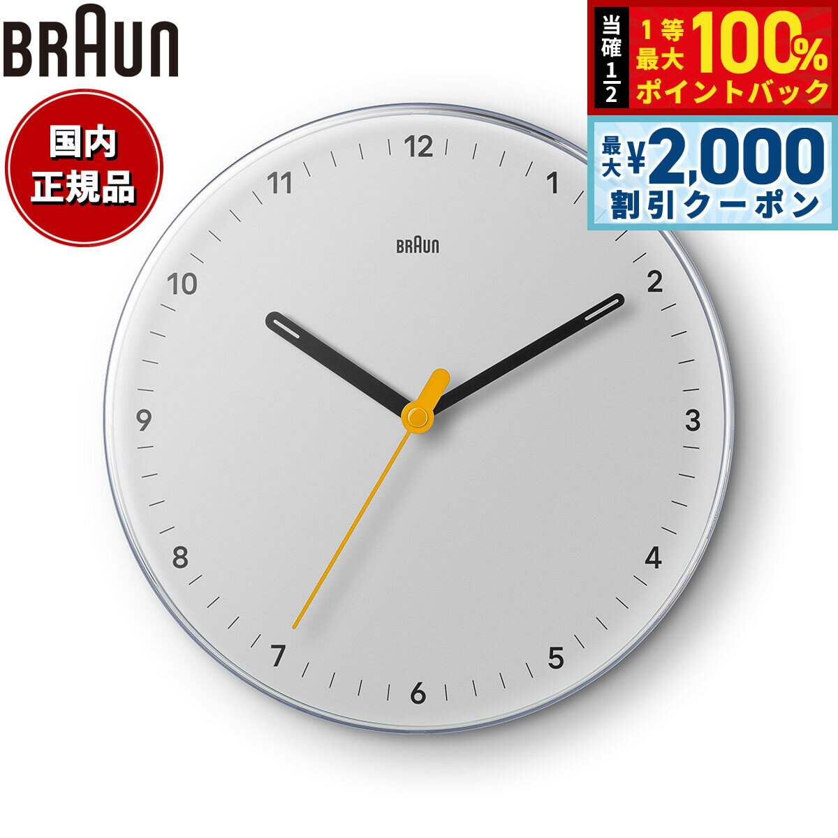 【15日限定!2000円OFFクーポン&抽選で最大10000ptバック】BRAUN ブラウン ウォールクロック BC26W アナログ 掛け時計 Wall Clock 230mm ホワイト 7,700 円