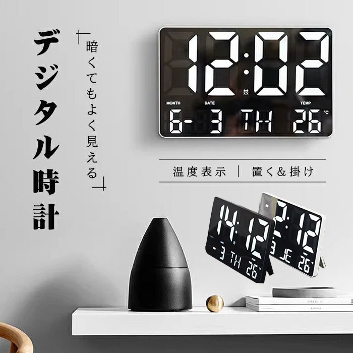 商品詳細 商品紹介 大型LEDシンプルウォールクロック 日付/温度を表示することもできます。 クリアで見やすいLED電子時計です。 遠隔操作できるリモコンを搭載しております。 後ろの隠し脚も開いて机の上で使用できます。 【5モードLED輝度調整】 光感知機能により常夜灯が暗くなったことを検知すると時計の表示が自動的に暗くなります。 【電源オフメモリ機能】 大きなアラビア数字表示が読みやすいです。 【3つの吊り下げ穴の設計】 安全で安定しており、落下しにくい 英語/ドイツ語/フランス語/イタリア語/スペイン語/オランダ語/デンマーク語を含む複数の言語で毎週表示されます。 勉強/レストラン/オフィス/会議室/実験室/学校/ホテルのレセプションホール/ショップなどに適しています。 【素材】:ABS 【サイズ】:横幅24.5cm×縦幅16cm×奥行き2.5cm 【電源】:プラグインモデル 1ピースLED壁掛け時計/1ピースリモート ご注意 ※実際の色味と写真の色味は光の当たり方やディスプレイの環境によって、多少異なる場合がございますのでご了承くださいませ。 ※製品品質向上、または製造時期により、予告なくデザイン及び仕様を変更する場合がございます。 ※生産過程におきまして、若干のサイズ誤差、個体差が生じる場合がございます。 ※サイトに掲載されている商品は、撮影の照明、またパソコンなどの環境により、画像と実際の商品の色味が多少異なる場合がございます。 evidence-cq12 メーカー希望小売価格はメーカーサイトに基づいて掲載しています 【スーパーSALE10%オフ】壁掛け時計 デジタル時計 LED 時計 リモコン付 日付 温度表示 光感知機能 大画面 北欧風 シンプル 横幅24.5cm×縦幅16cm×奥行き2.5cm インテリア時計 結婚祝い 新築祝い 引っ越し祝い し 4,599 円
