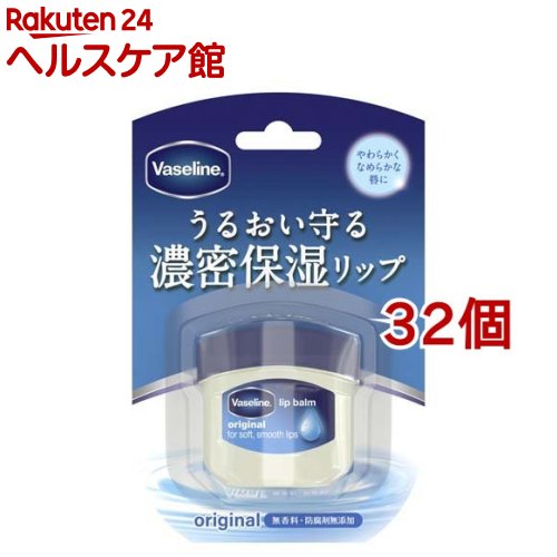 お店TOP>化粧品>リップケア・眉まつげケア>リップケア>リップクリーム>ヴァセリン リップ オリジナル (7g*32個セット)商品区分:化粧品【ヴァセリン リップ オリジナルの商品詳細】●1870年にアメリカで誕生して以来、世界90ヶ国以上で展開しているスキンケアブランドかの縦横3.5cmの超ミニチュア、可愛らしいサイズのリップクリームです●保湿成分のワセリンを主成分とし、高い保湿効果と安定性に優れ、唇の水分を逃しません。 ●防腐剤無添加。 ナチュラルな処方で、赤ちゃんから大人まで幅広い世代の方に【使用方法】・適量を指で取り出し唇に塗ってください。 【成分】ワセリン、トコフェロール、BHT、黄4【注意事項】・肌に傷、はれもの、湿疹等、異常のあるところには使用しないでください。 ・肌に赤み、はれ、かゆみ、刺激等の異常が現れた時は、使用を中止し、皮ふ科医等へご相談ください。 そのまま使用を続けると症状が悪化することがあります。 ・乳幼児の手の届くところには置かないでください。 ・横や逆さまに保管したり、容器を強く押すと、液がにじみ出たりフタが外れることがあるので、携帯の際は注意して下さい。 【原産国】アメリカ【ブランド】ヴァセリン(Vaseline)【発売元、製造元、輸入元又は販売元】ユニリーバ※説明文は単品の内容です。 商品に関するお電話でのお問合せは、下記までお願いいたします。 受付時間9:00-17:00(土・日・祝日、年末年始を除く)ヘアケア製品:0120-500-513スキンケア製品:0120-110-747ポンズインスティテュート:0120-500-076ホームケア製品:0120-362-170紅茶製品:0120-238-827リニューアルに伴い、パッケージ・内容等予告なく変更する場合がございます。 予めご了承ください。 (Vaseline バセリン ワセリン lip original)・単品JAN:4902111738826ユニリーバ153-8578 東京都目黒区上目黒2-1-1 ユニリーバ・ジャパン株式会社 ※お問合せ番号は商品詳細参照広告文責:楽天グループ株式会社電話:050-5577-5043[リップケア/ブランド:ヴァセリン(Vaseline)/] ヴァセリン リップ オリジナル(7g*32個セット)【ヴァセリン(Vaseline)】 12,787 円